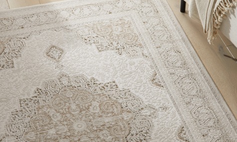 Our Olivia collection is a fusion of traditional and modern designs in soft cream, beiges and greys. Machine woven with high quality polyester yarn, these rugs have a soft luxurious pile and a subtle silk like sheen.