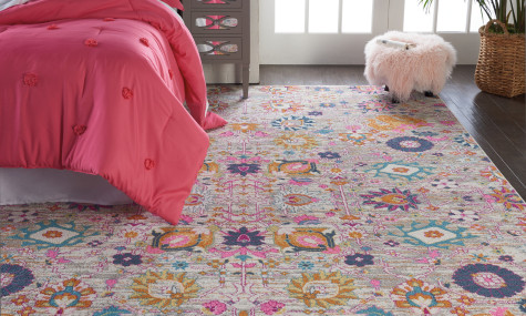 Rich, seductive color draws you into the plush beauty of the Passion Collection. These fantastic florals and dramatic geometric designs meld elements of classic Persian motifs with a bohemian sensibility. Woven of polypropylene fibers on state-of-the-art power looms, this collection of area rugs combines thick, comfortable pile with an easy-care approach. Advanced overdye techniques create an exciting patina effect in shades of pink, blue, and orange. Live a more colorful life with Passion in your home!