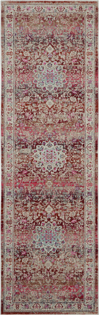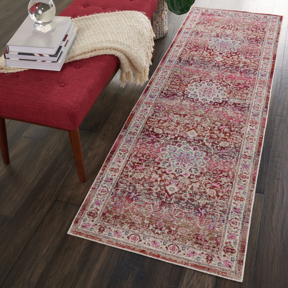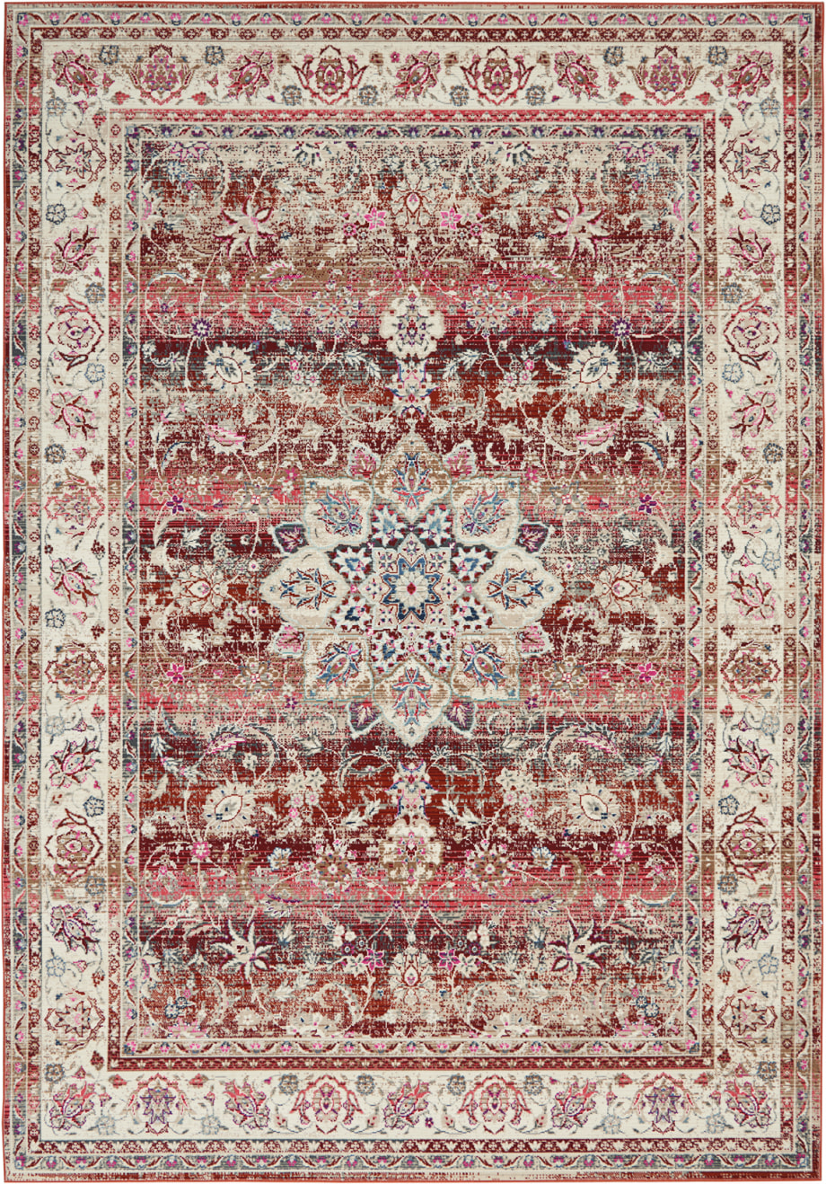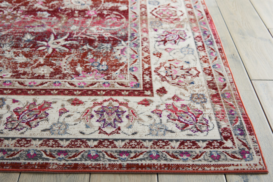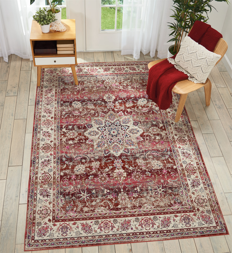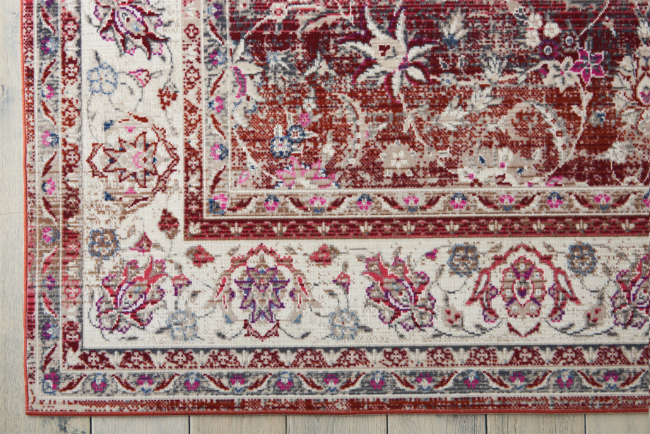 This Vintage Kashan rug exudes the elegance of a vintage rug, with its Oushak-inspired middle star and traditional Persian rug border design. Glossy low-pile fibers shine with an abrash red, adorned with graceful floral accents for the look and feel of an heirloom.
