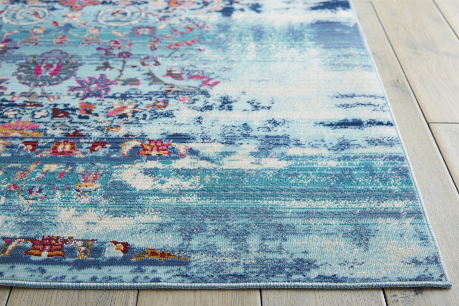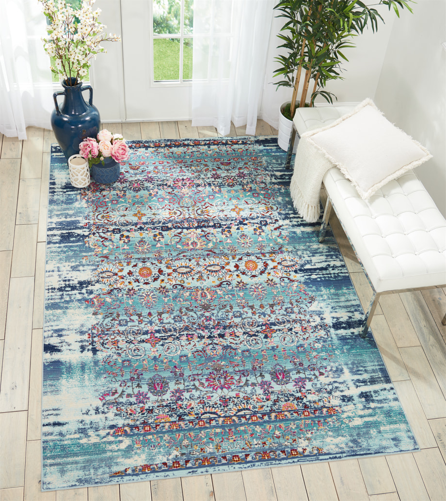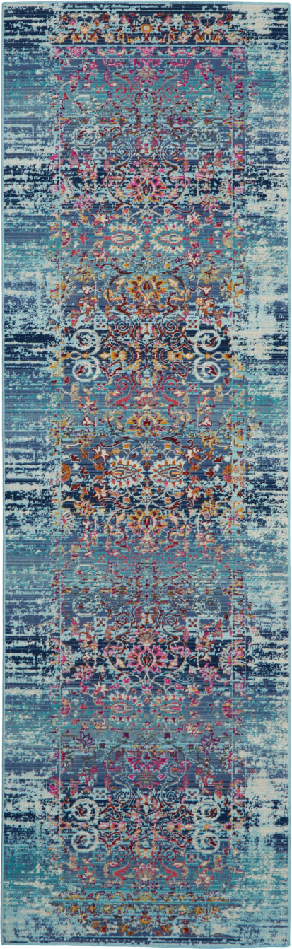 This Vintage Kashan rug brings an instant aura of traditional style to any space. The deeply distressed low-cut pile features an almost-obscured Persian border pattern, with ornate herati patterns adorning the deeply striated blue field.