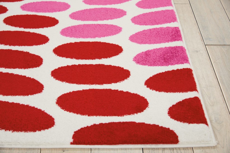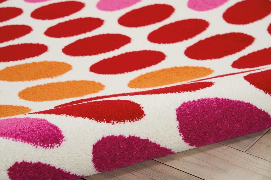 It's a mod, mod world when you step into a room filled with the psychedelic swirl of this Oakdale area rug. Its playful sense of movement is beautifully enhanced with a colorful display of cascading polka-dots. A perfect easy-care choice for a casual lifestyle that still craves some retro spice.