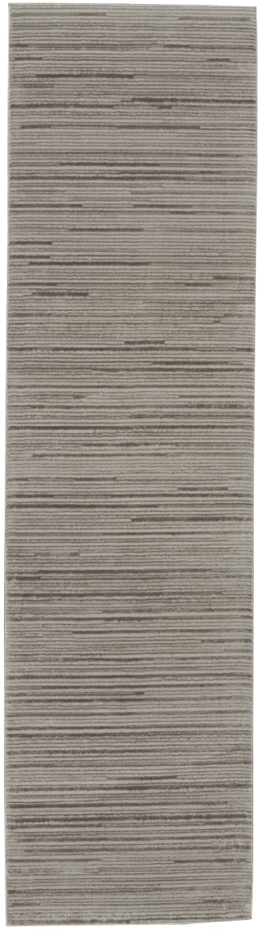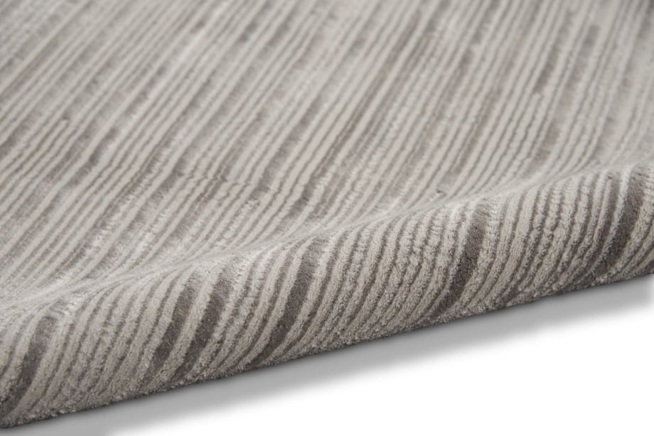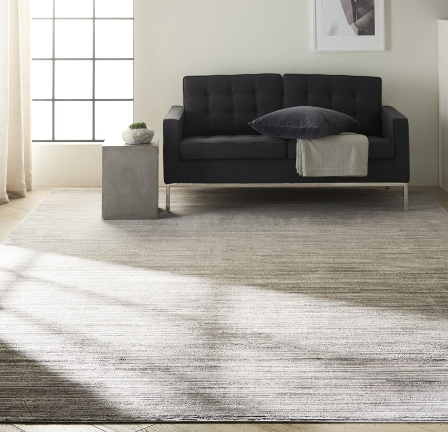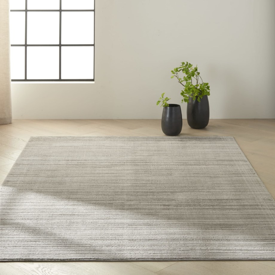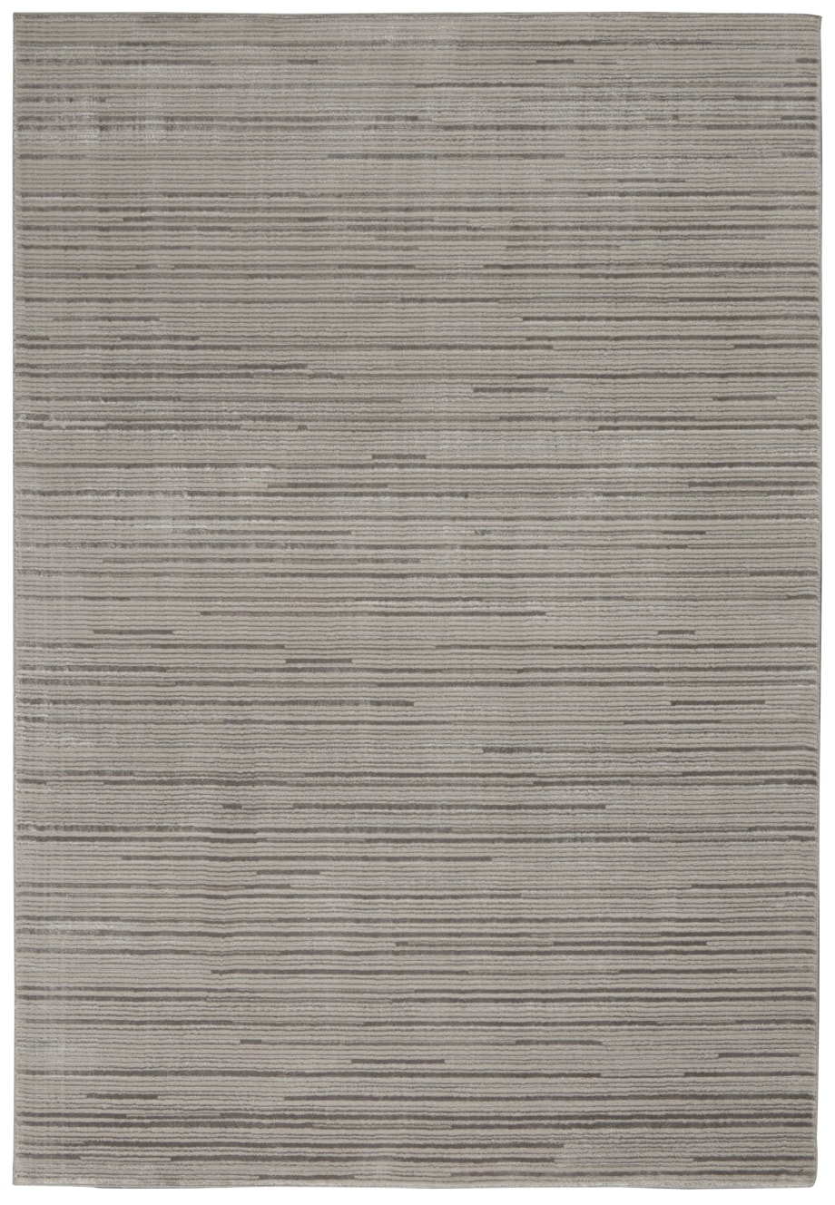 With subtle textured ridges and distressed rows of striated grey and silver tones, this Ventura rug from the CALVIN KLEIN Orlando Collection brings a distinct mid-century décor feel to any room in the home. The sleek low-pile construction features soft, easy-care fibers for a contemporary, Americana-inspired look that works in a wide range of interior styles.