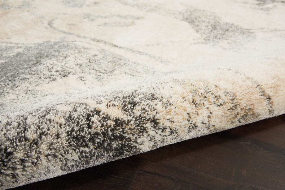 Sumptuous low-pile shag and chic neutral colors make this Fusion Collection rug an exceptionally luxurious accent for any room in the home. Ivory and grey abstract patterns with beige highlights blend into any contemporary décor for a touch of texture in your favorite room.