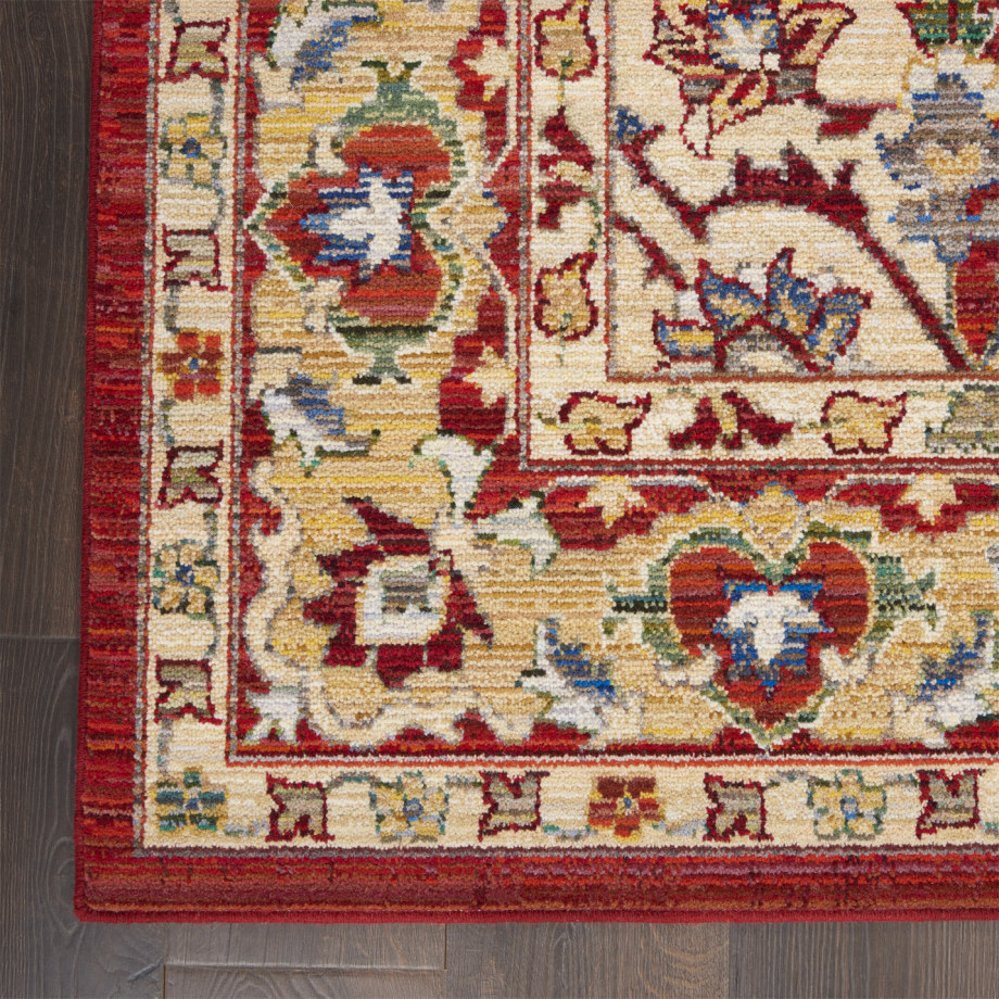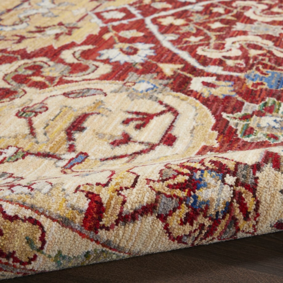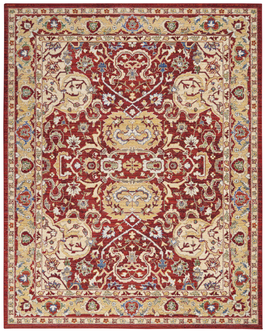 Vivid contrasting colors make this Majestic Collection rug a centerpiece in any room in the home, with an abrash red field and ornate gold border and medallion pattern reflecting the rich detail of Persian rug design. Thick, luxurious cut pile from wool and nylon create the look and feel of a vintage rug that will bring elegance and excitement to any room in the home.