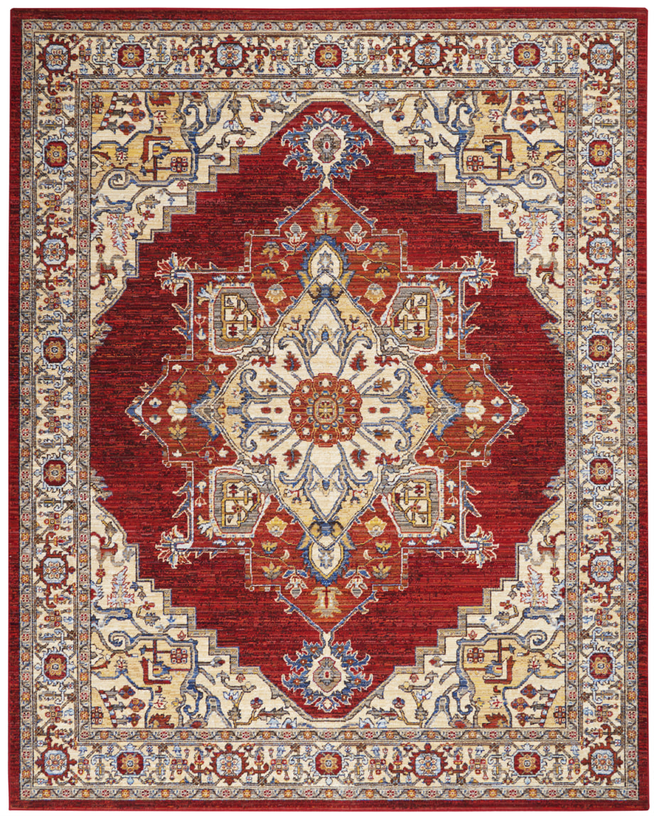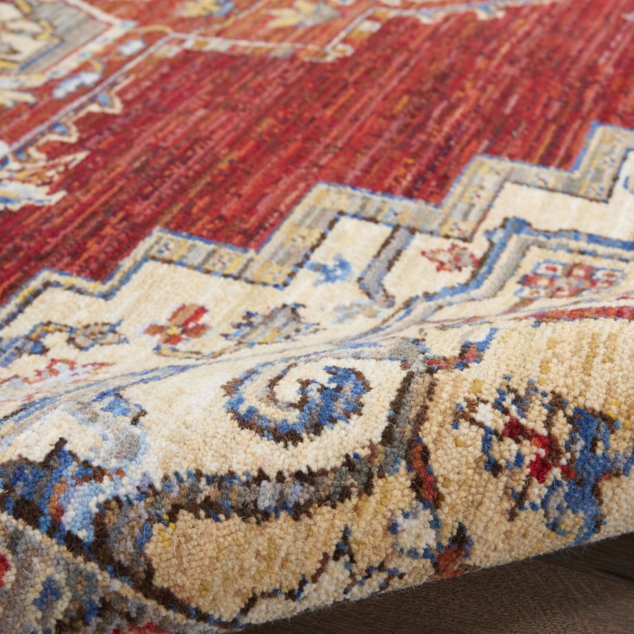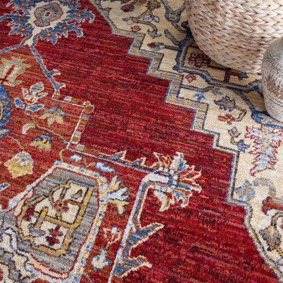 This bold corner-medallion Persian rug from the Majestic Collection features an intense abrash red field with a spectacular middle star design for an infusion of color and exotic appeal in any room. Thick, luxurious cut pile from wool and nylon create the look and feel of a vintage rug that will bring elegance and excitement to any decor.