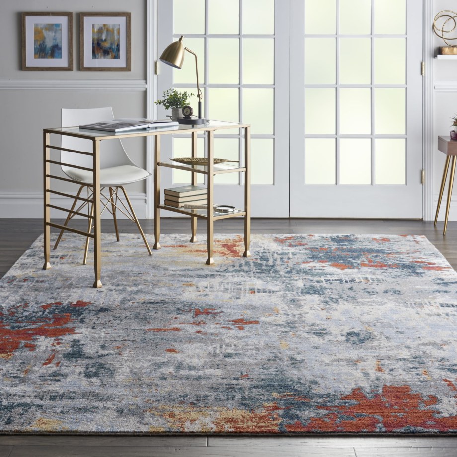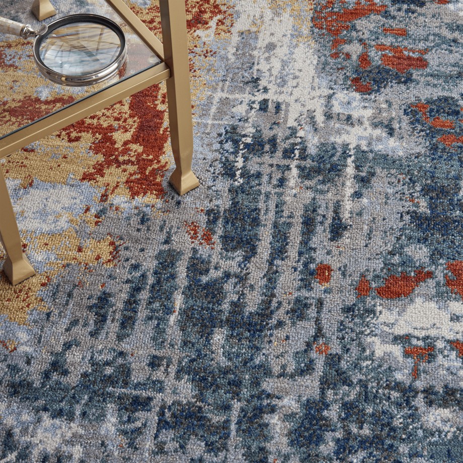 Gleaming colors seem to pool and swirl in this fascinating Artworks Collection contemporary rug. Its exciting abstract design is enriched by superb cut-pile texture and the richly pigmented, slate and brick multicolor palette. Each rug features top quality New Zealand wool blended with a touch of Luxcelle for exceptional durability with added texture and sheen.