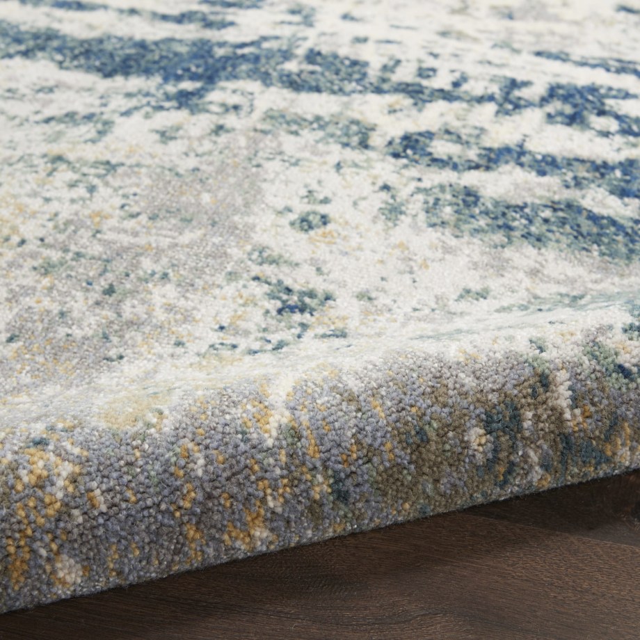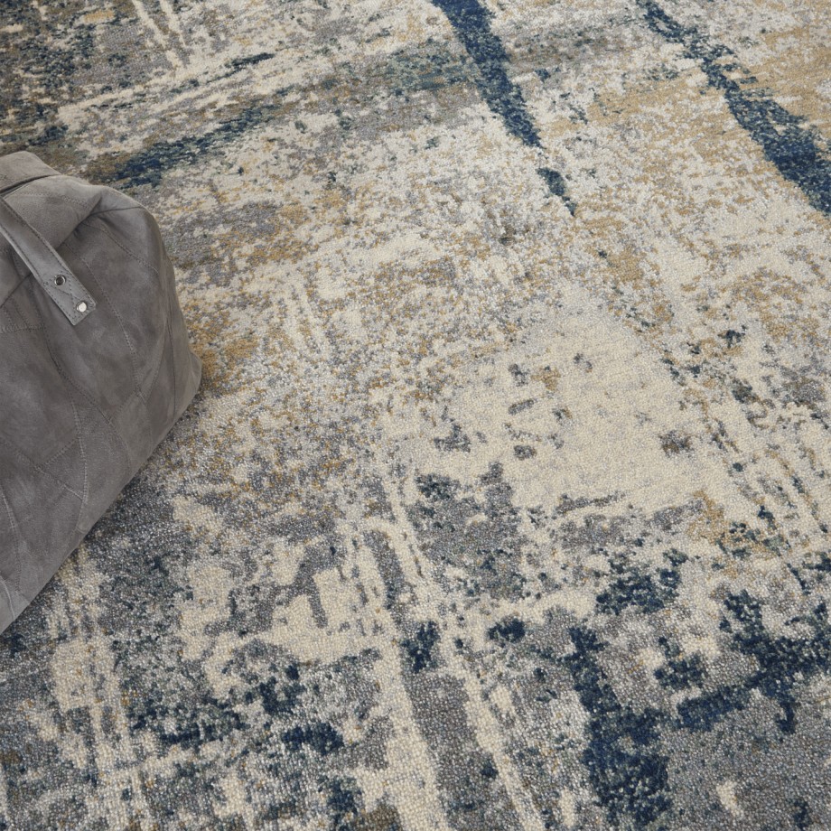 This Artworks Collection rug brings new intensity to neutral colors with a compelling abstract design. Ivory and navy create interplays of light and dark for a contemporary tone in any room in your home. Each rug features top quality New Zealand wool blended with a touch of Luxcelle for exceptional durability with added texture and sheen.
