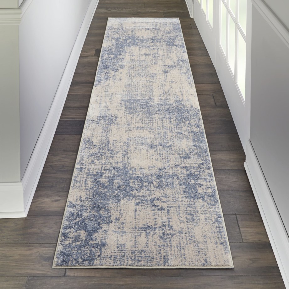 Superb texture, light and shadow create silken effects in this enticing Silky Textures rug. Awash with luminous tones of ivory and blue, this subtly dazzling rug brings light and beauty into the home. It's a modern, sophisticated and amazingly versatile element of decor.