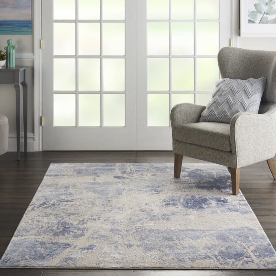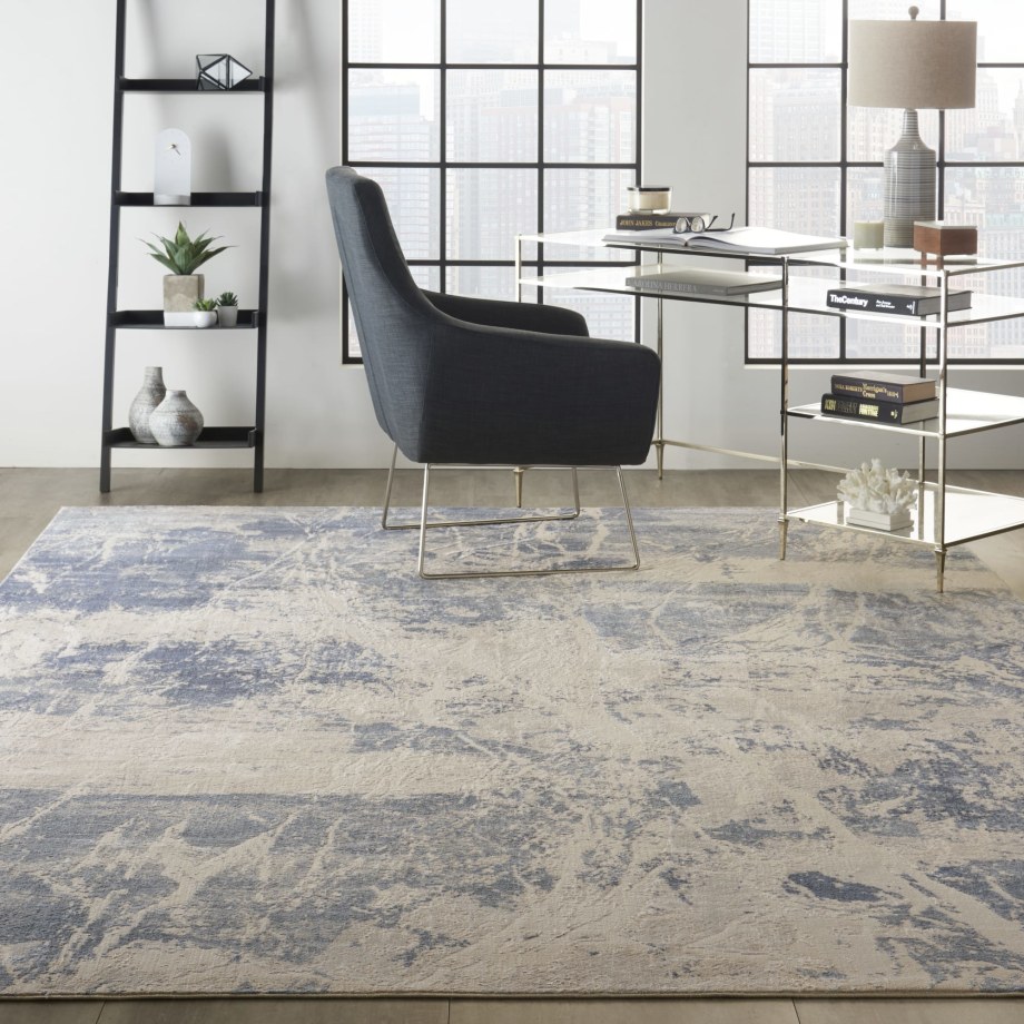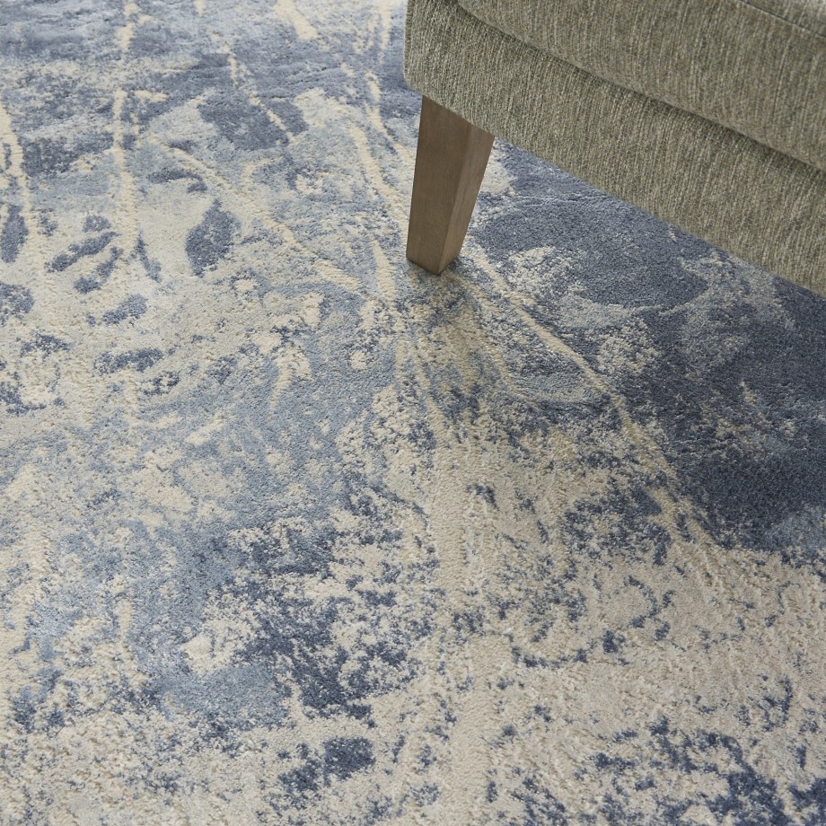 The shimmering beauty of this Silky Textures rug is expressed in a unique abstract design filled with dazzling watercolor effects. Limpid pools of blue seem to ripple on the ivory ground, creating an irresistible field of soft beauty that's perfect for the artful room.