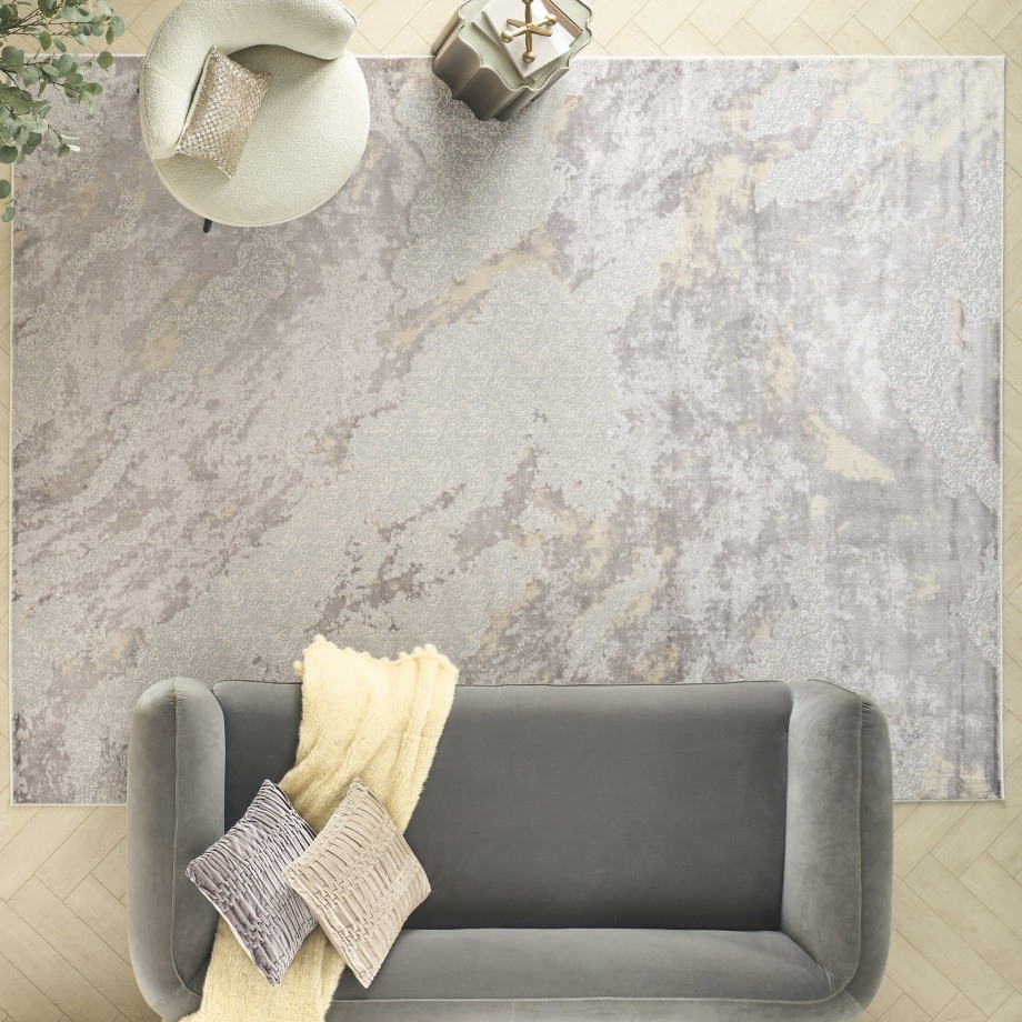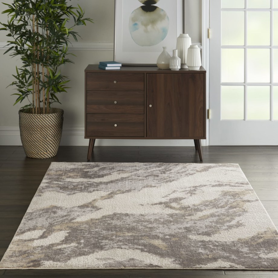 Exciting marbleized effects send swirls of luminous earth tones across this fascinating Silky Textures rug. It's a masterwork of textile design in a palette of warm, modern neutrals. Ideal for a contemporary touch in any room.