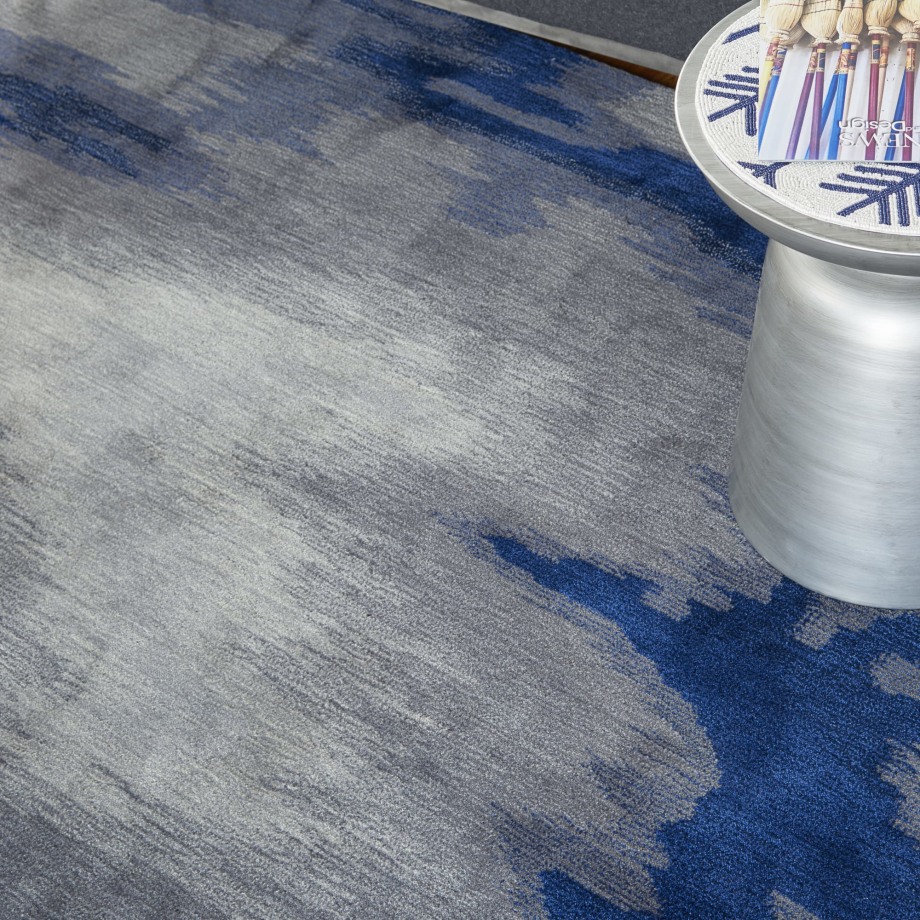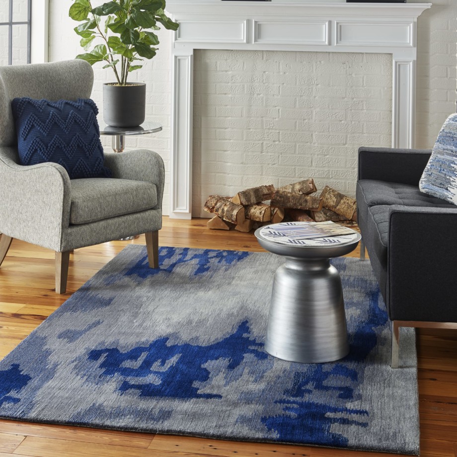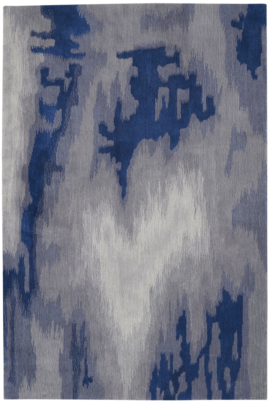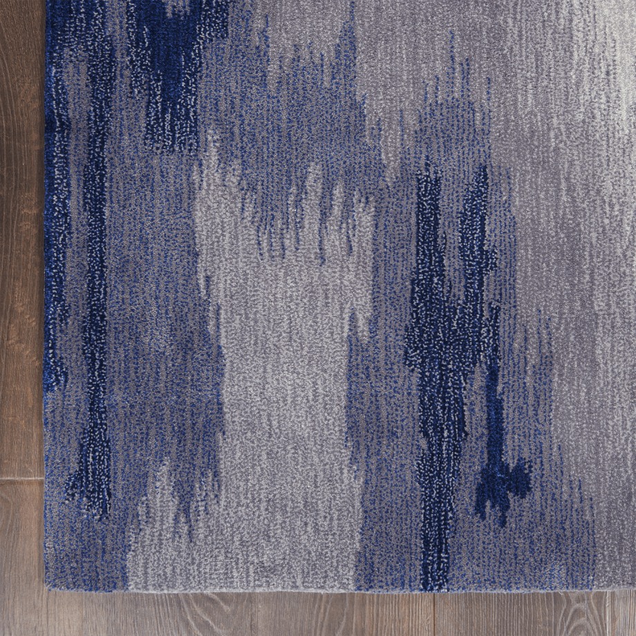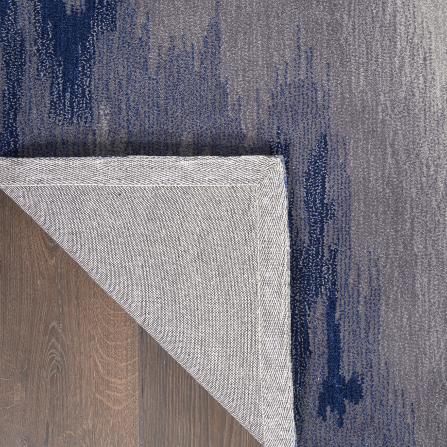 This Symmetry Collection contemporary rug features royal blue and grey blending in striking abstract patterns for a combination of modern chic and peaceful hues that fit any decor. This painterly patterned rug features exceptional hand-crafted quality, with easy-care fibers that will bring an artistic vibe to your favorite room.