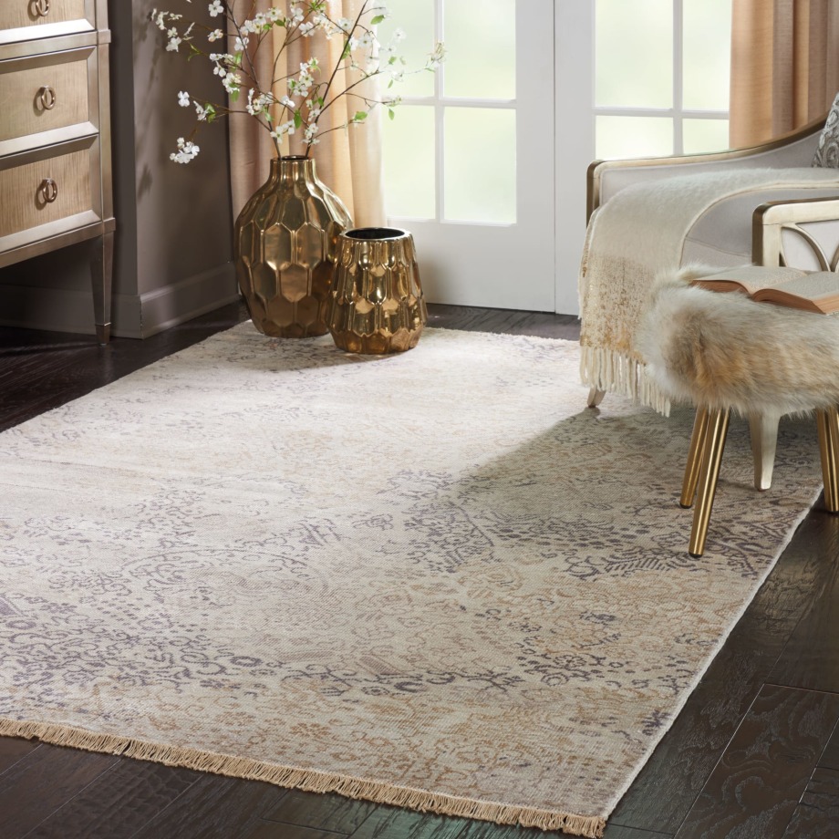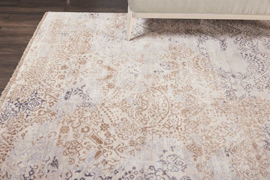 In alluring shades of opal, a magnificent antique-inspired design brings a light-filled luminosity to any room where a traditional touch is required. With its eye-catching attention to detail, fabulous fringes, gorgeous hand knotting and opulent bamboo extruded silk-like pile, this breathtaking Aldora area rug from Nourison is destined to dazzle.