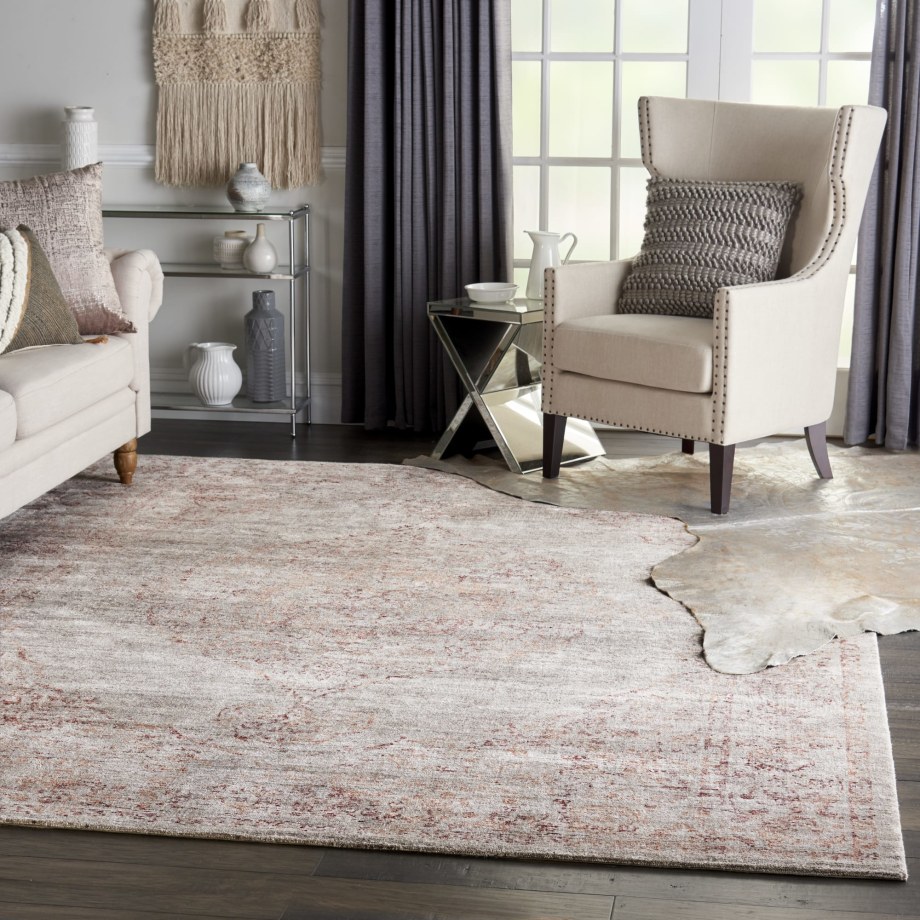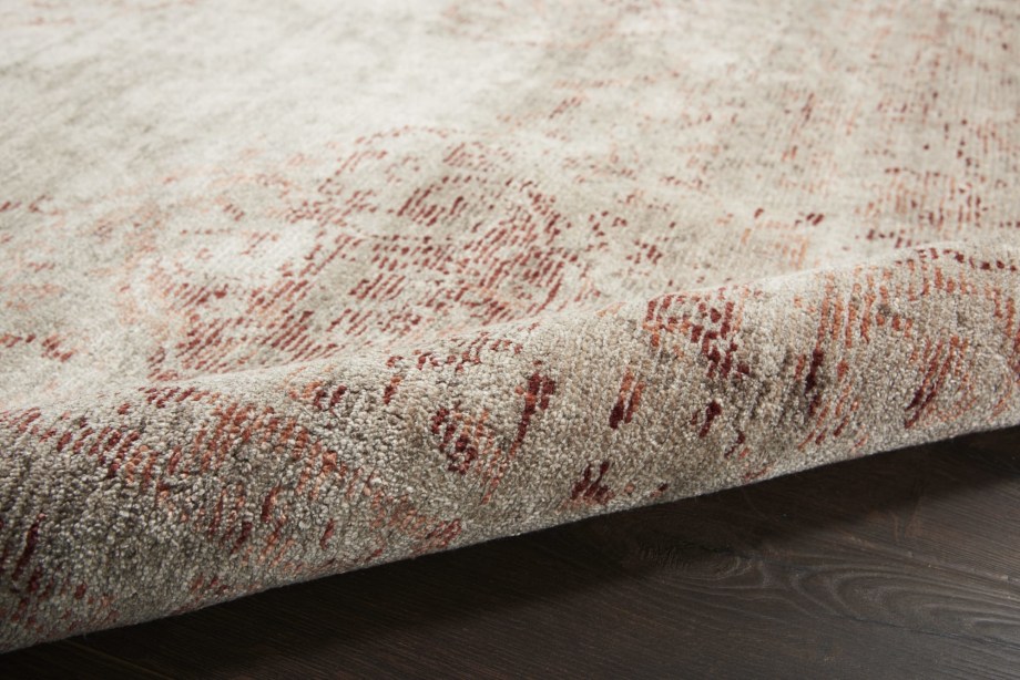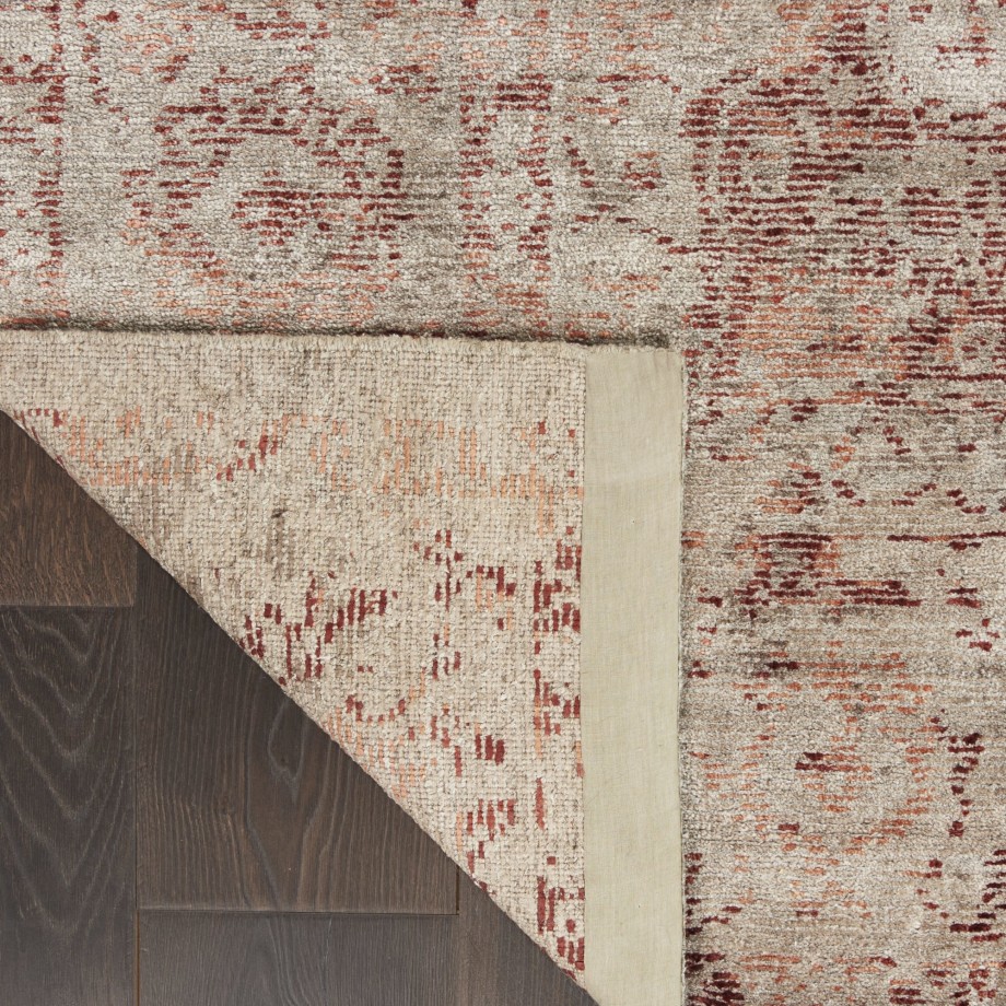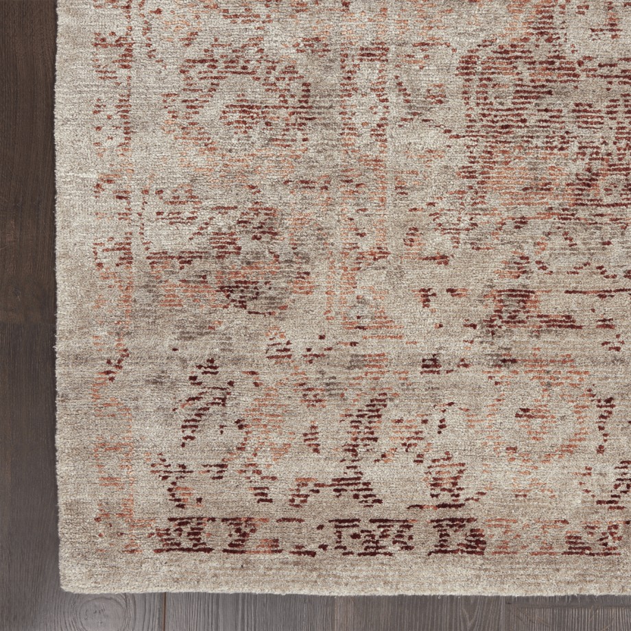 Subtle yet distinctive, the beauty of this Lucent area rug shines through in its rich abrash finish that gently fades and burnishes its burgundy-silver pattern. Hand-knotted from sustainable bamboo fibers; a contemporary spin on Tibetan heritage textiles.