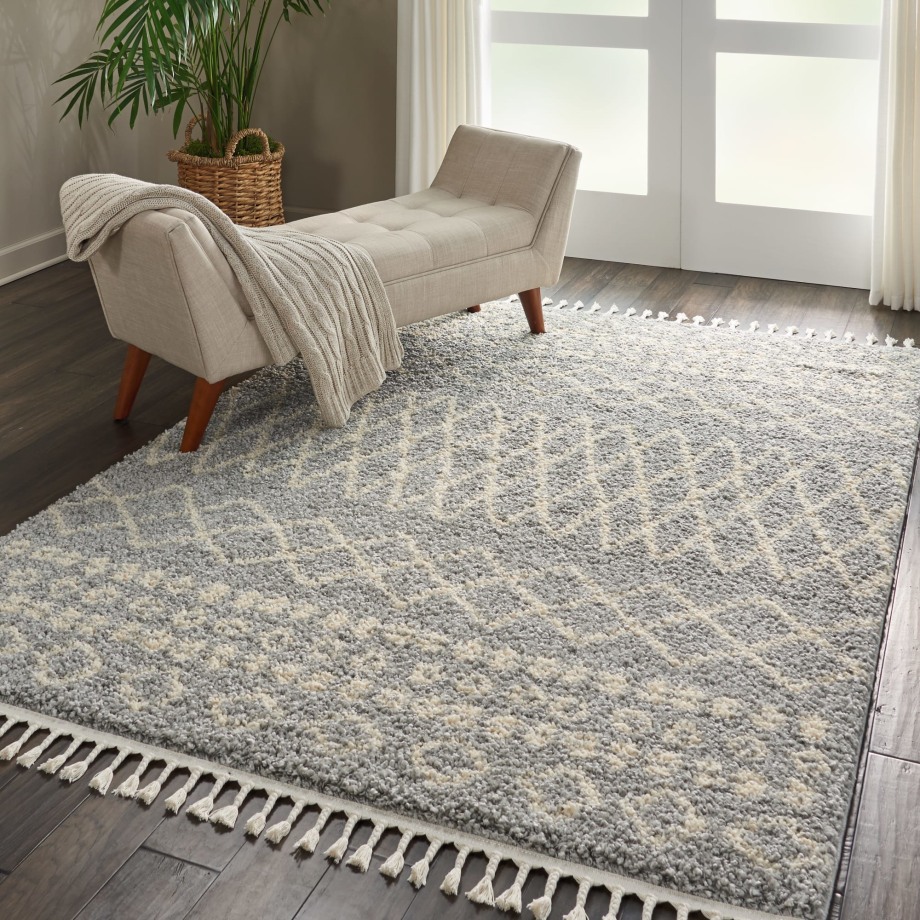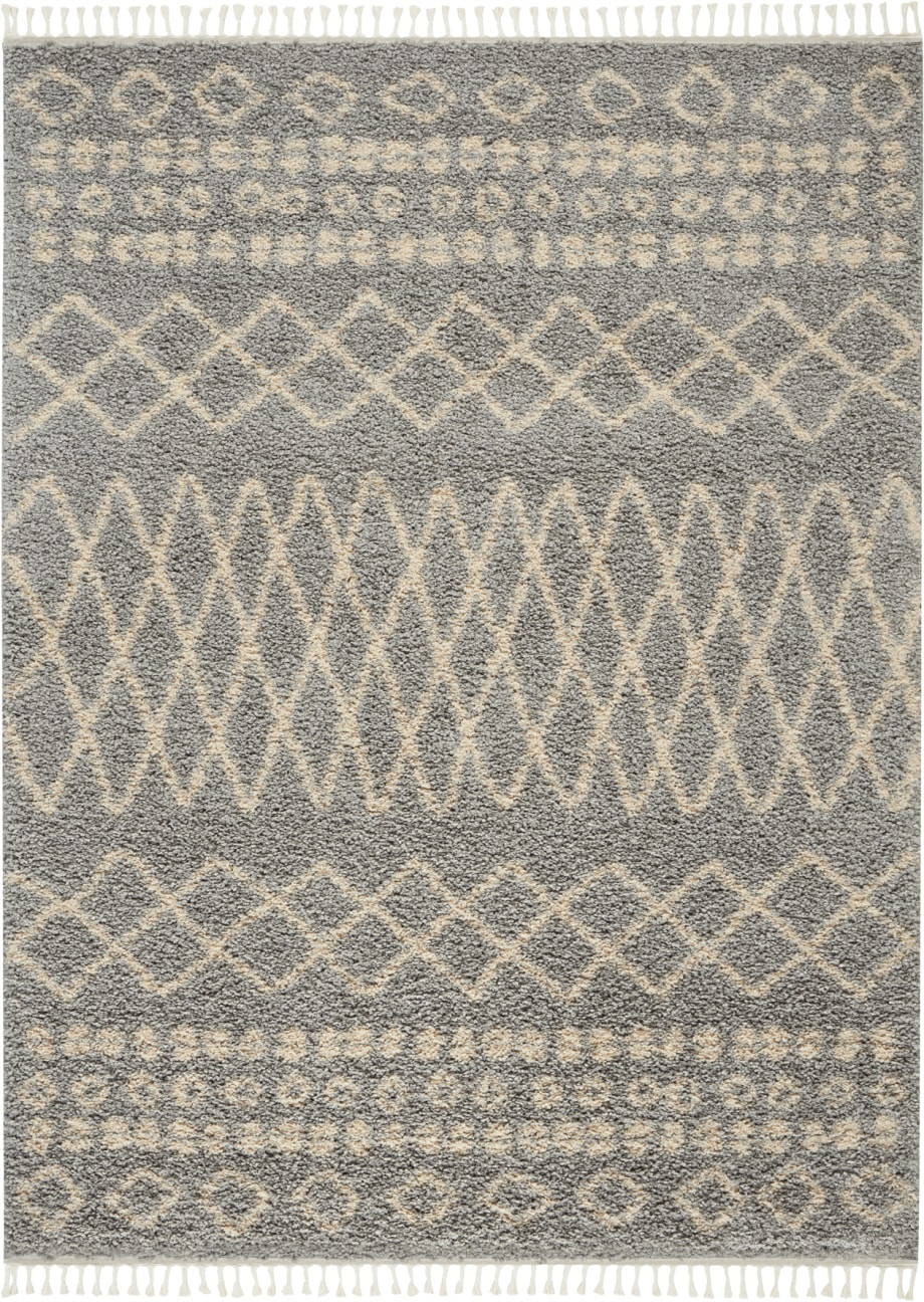 Let Moroccan Shag fill your room with the warmth, mystery, and tribal rhythms of North African culture. This exciting shag rug collection, inspired by authentic Moroccan rug designs, has everything the stylish tastemaker needs to add intrigue to a room. Deftly woven linear patterns draw the eye, while the soft shag pile creates comfort and irresistible texture. Each rug is finished with a twisted fringe just like the Moroccan originals.