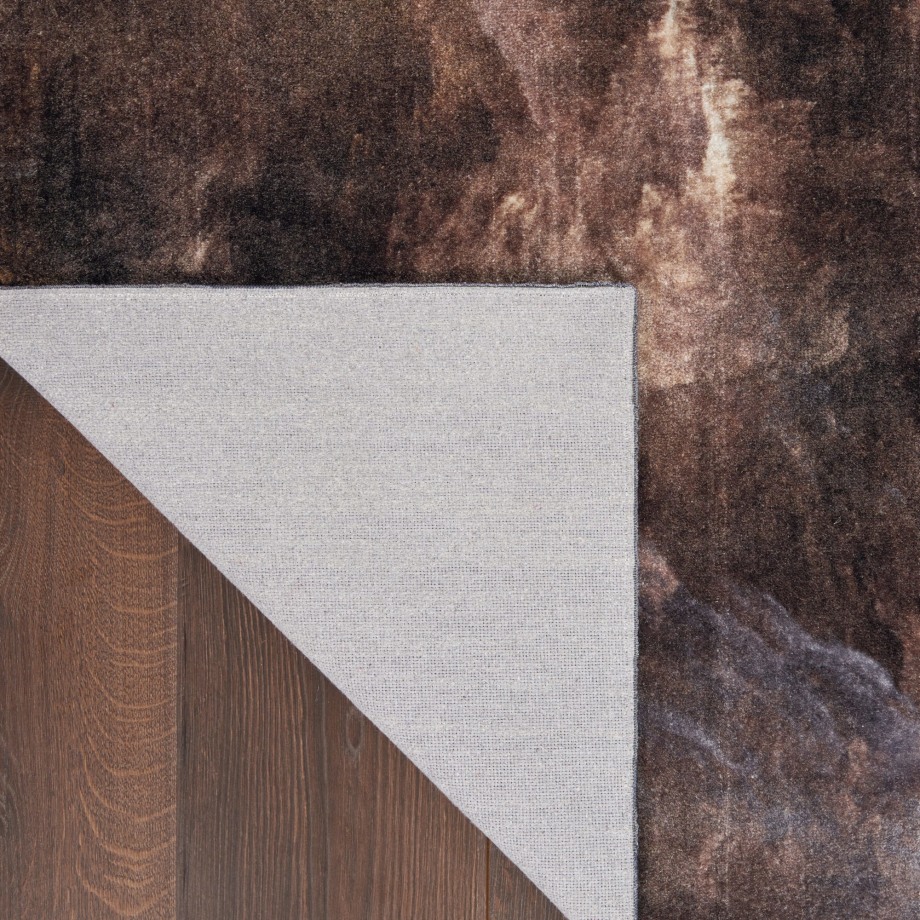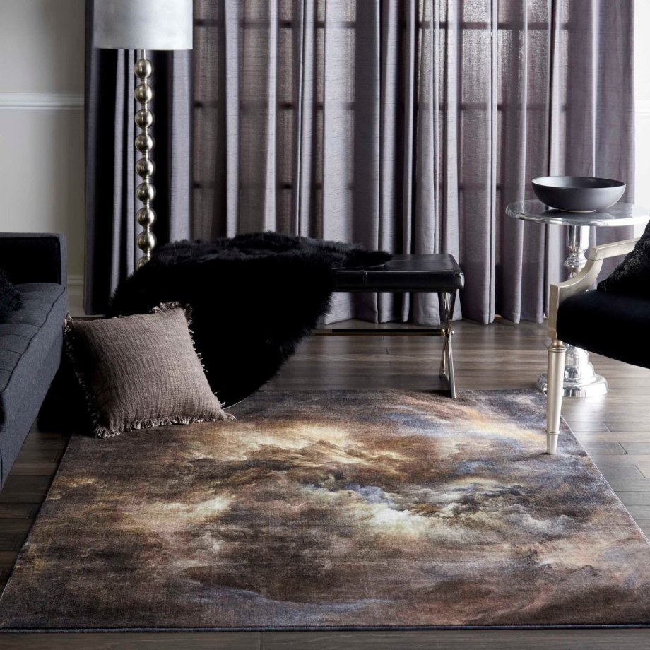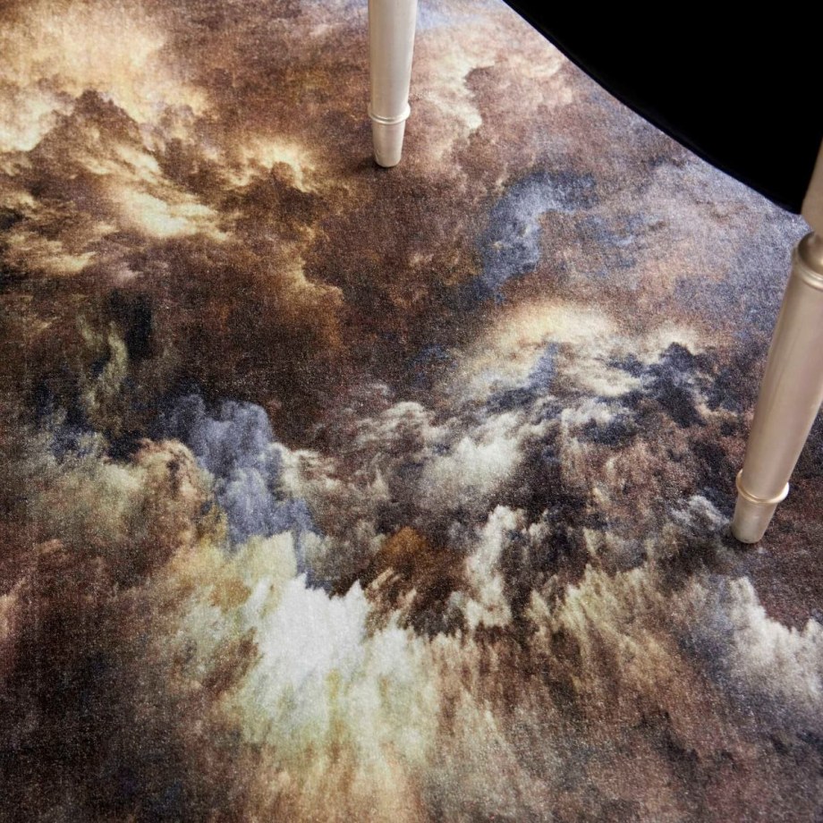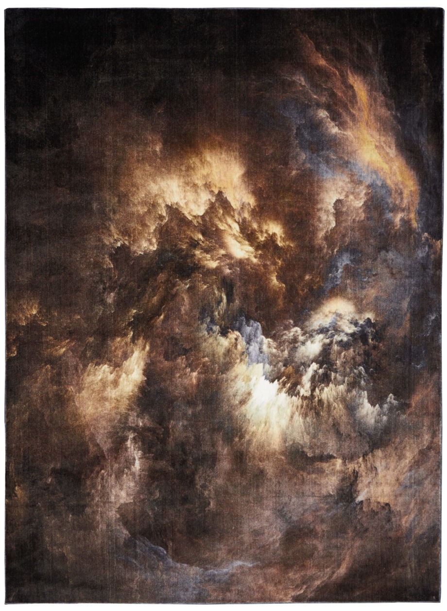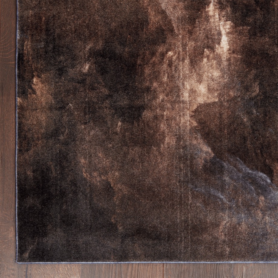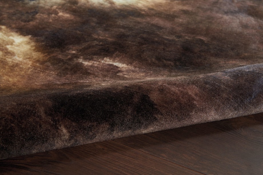 Rich chocolate tones tinged with gold swirl around a central light in abstract forms inspired by nature. The depth of space and feeling of movement is truly remarkable in this unique PhotoReal rug of the Le Reve collection. Its painterly effect is a statement of sophisticated modernism.