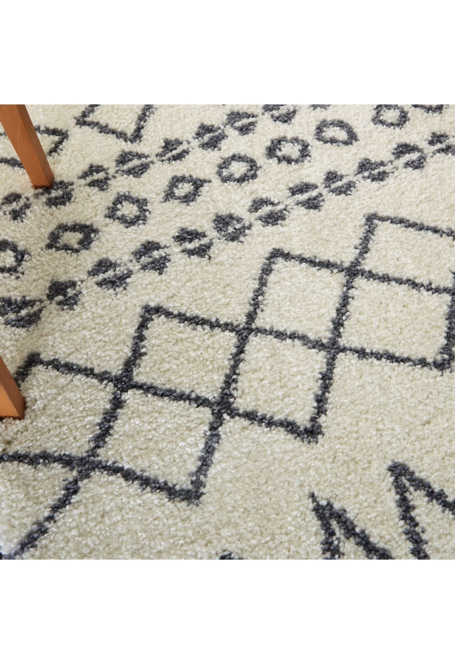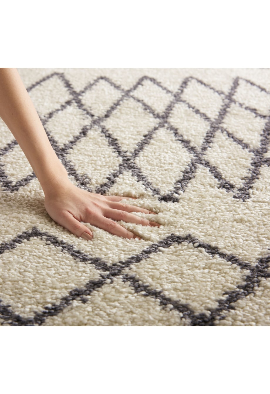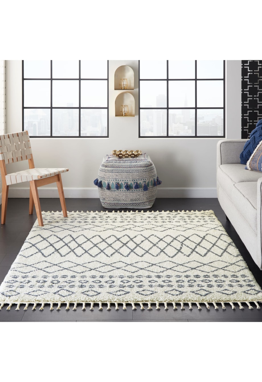 | With its upbeat tribal-inspired diamond design, cozy tassels, sumptuous shag construction and cosmopolitan color palette of white and black, this stunning Moroccan Shag area rug from Nourison seamlessly blends the best of the old world with the new. Hand loomed from a fantastic 100% Polypropylene friese for stress free living and to go the distance beautifully. |
