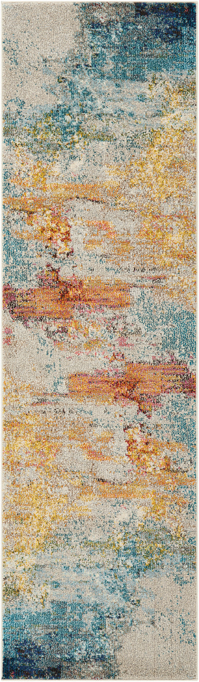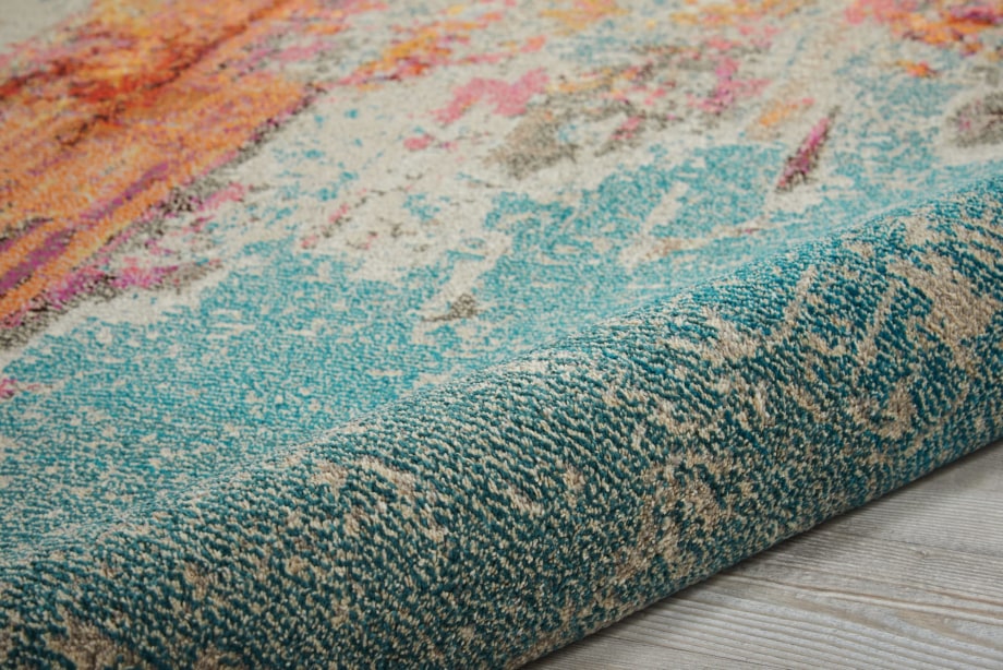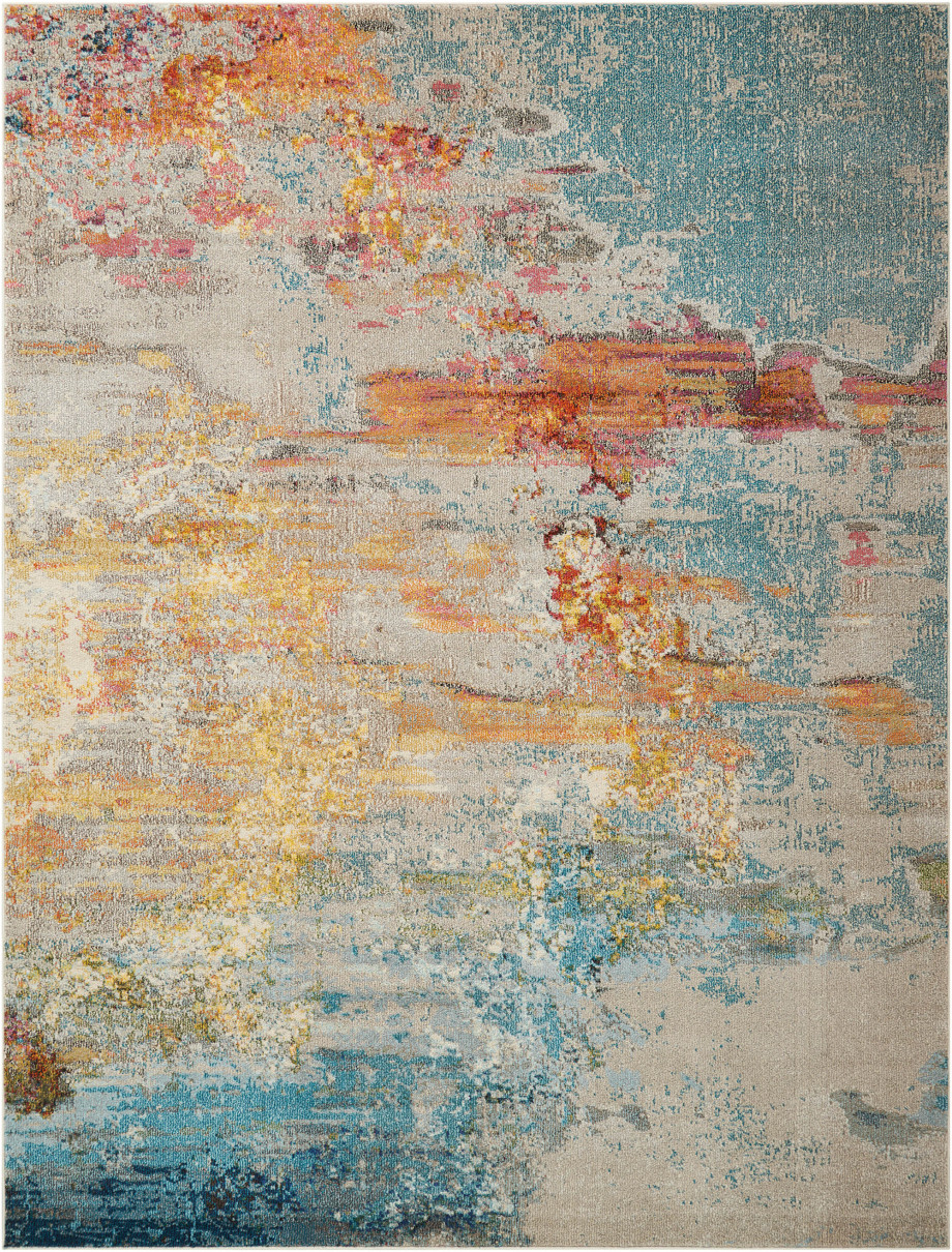 Like coral reefs along a sandy shoreline, this supremely breathtaking Celestial area rug by Nourison is awash with color. It seems to teem with oceanic life as its deep blues, vivid red-orange and gleaming yellow tones flow beautifully from one to the other.