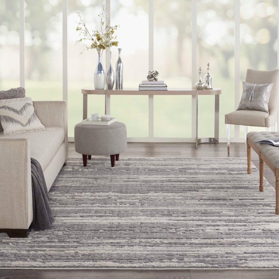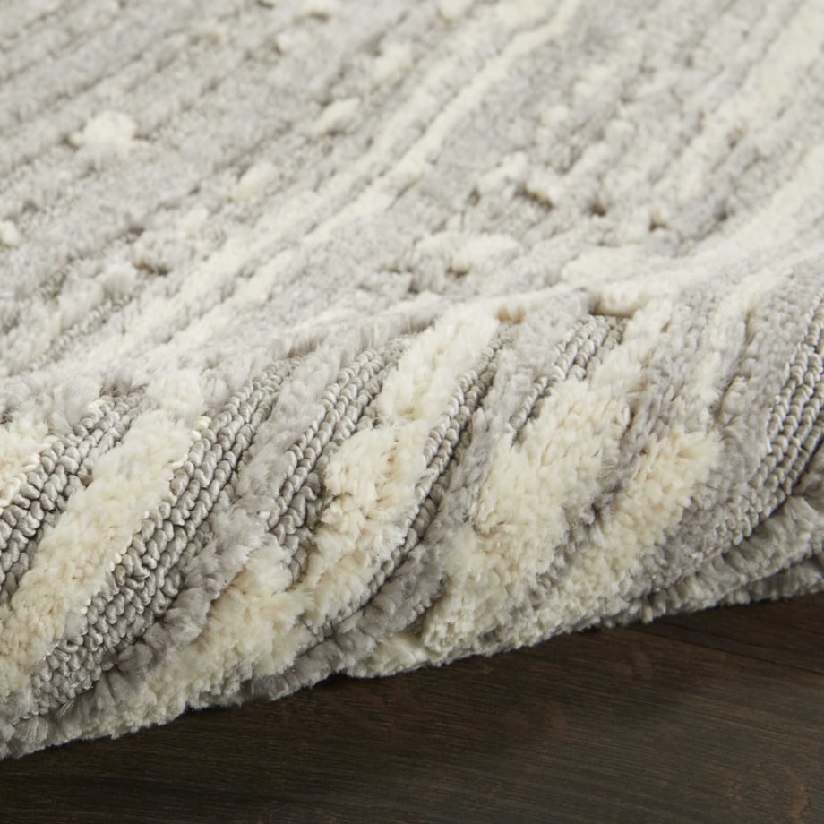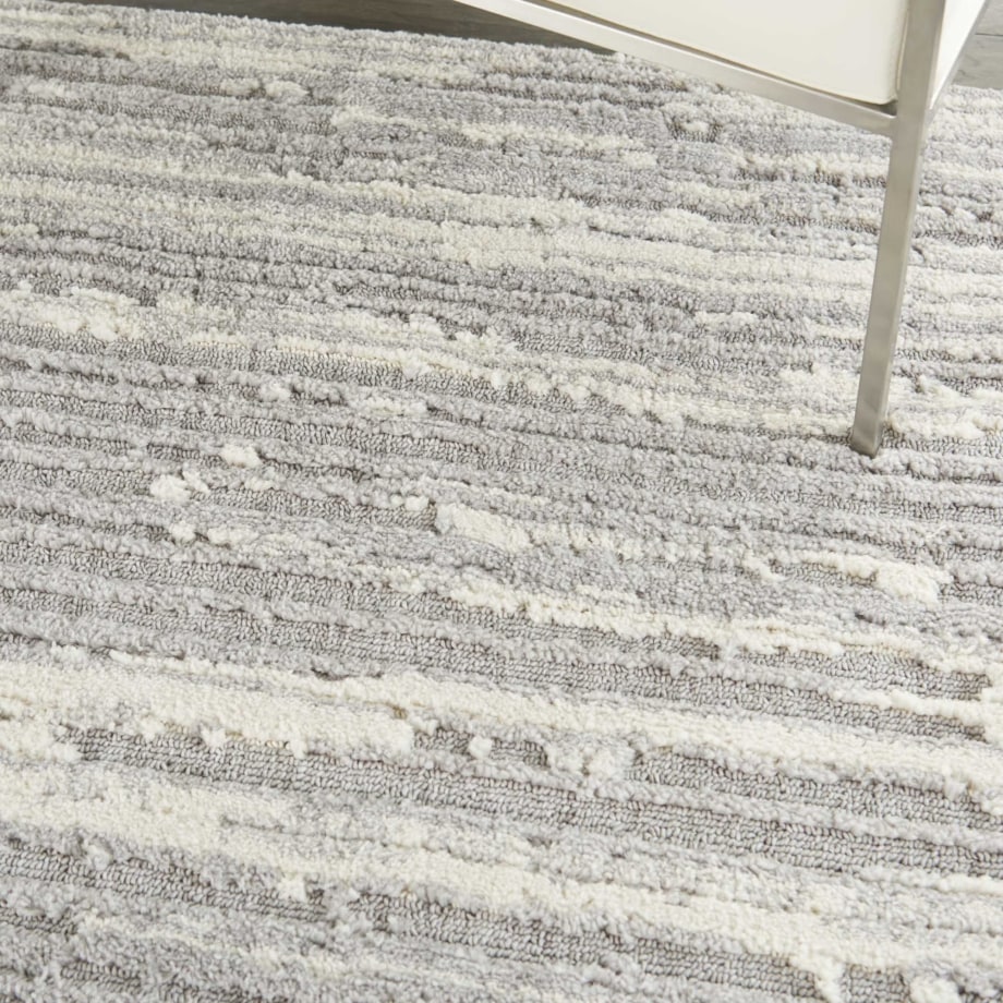 Enjoy the easy comfort of a minimalist look in this elegant and sophisticated Zermatt area rug. Its abstract design is beautifully enhanced by the dimensional, high-low pile combining low-loop and high-plush textures. Striations of rich, moody blues mix with luminous ivory for a superbly versatile finishing touch in any room, from classic to contemporary.