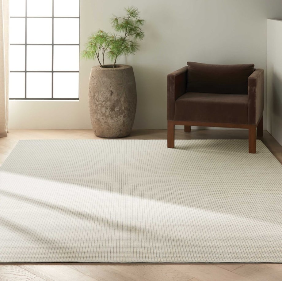 The cozy, plush Calvin Klein Pretoria rug is equally pleasant to look at and walk upon. Soft ivory color, mosaic pattern and an understated sheen lends simple elegance to any room in your home. Hand-crafted rugs are unique works of art and no two are exactly alike. Colors may vary slightly.