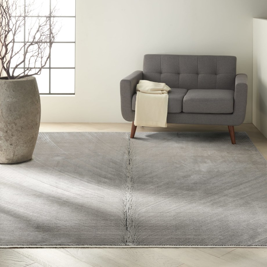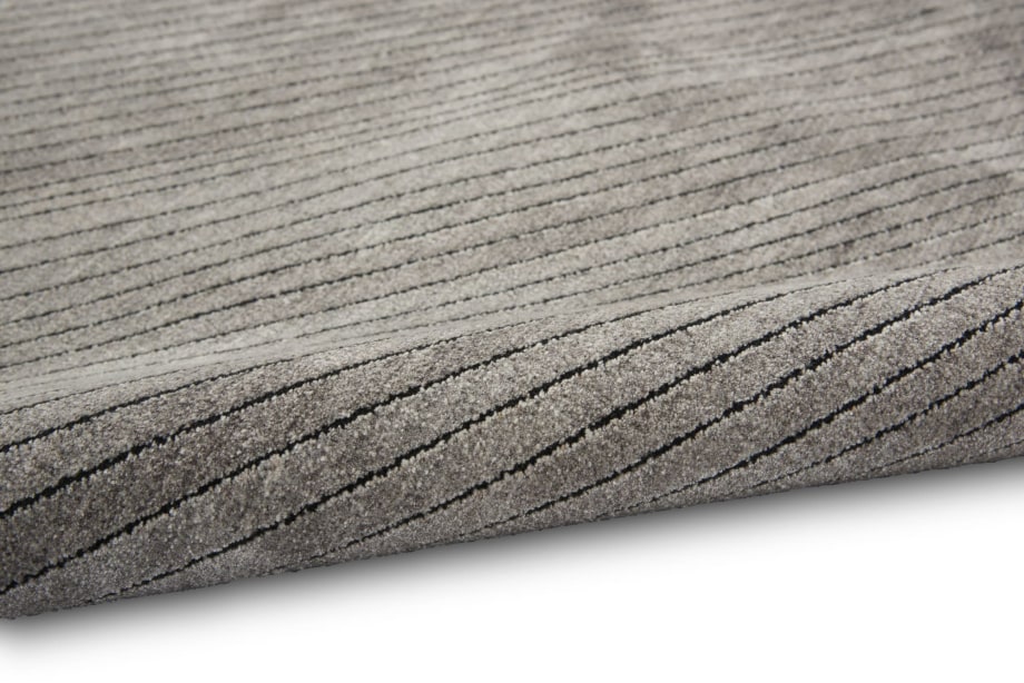 This CALVIN KLEIN Balian area rug creates the impression of hair-on-hide with a rhythmic, linear design. It features a masterfully created, dense, low pile, with carved details and a silk-like sheen. With a silver-grey palette and elegant fringe, this subtly intriguing area rug enhances any room.