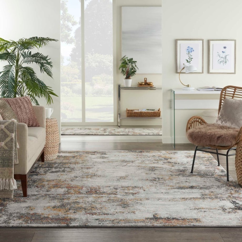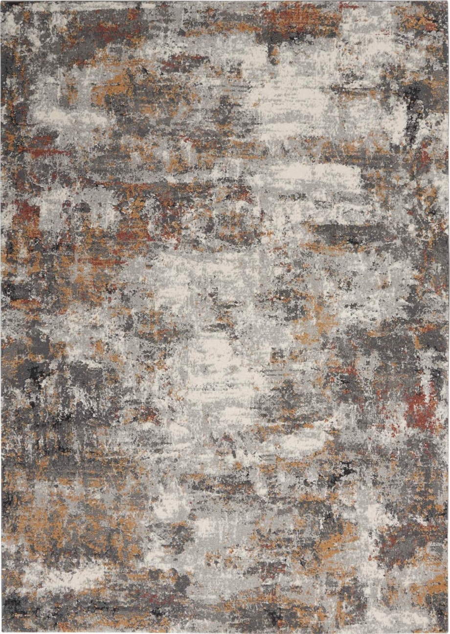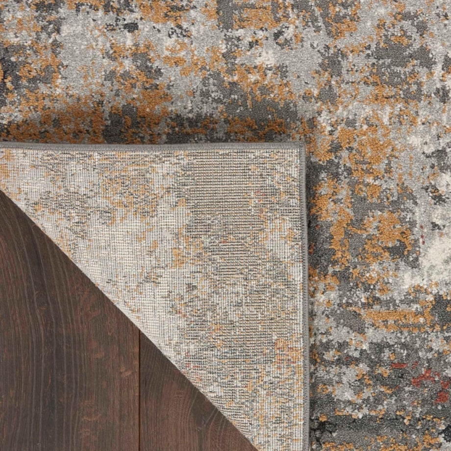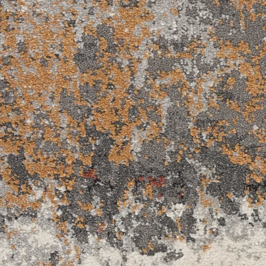 This Tangra area rug is abstract art for the floor and the perfect finishing touch for your modern or eclectic room. It's the ultimate in sophistication with a palette of transitional greys mixed with golden beige and sienna multi-color. Endlessly fascinating and easy to live with in a low-pile, poly-fiber blend.