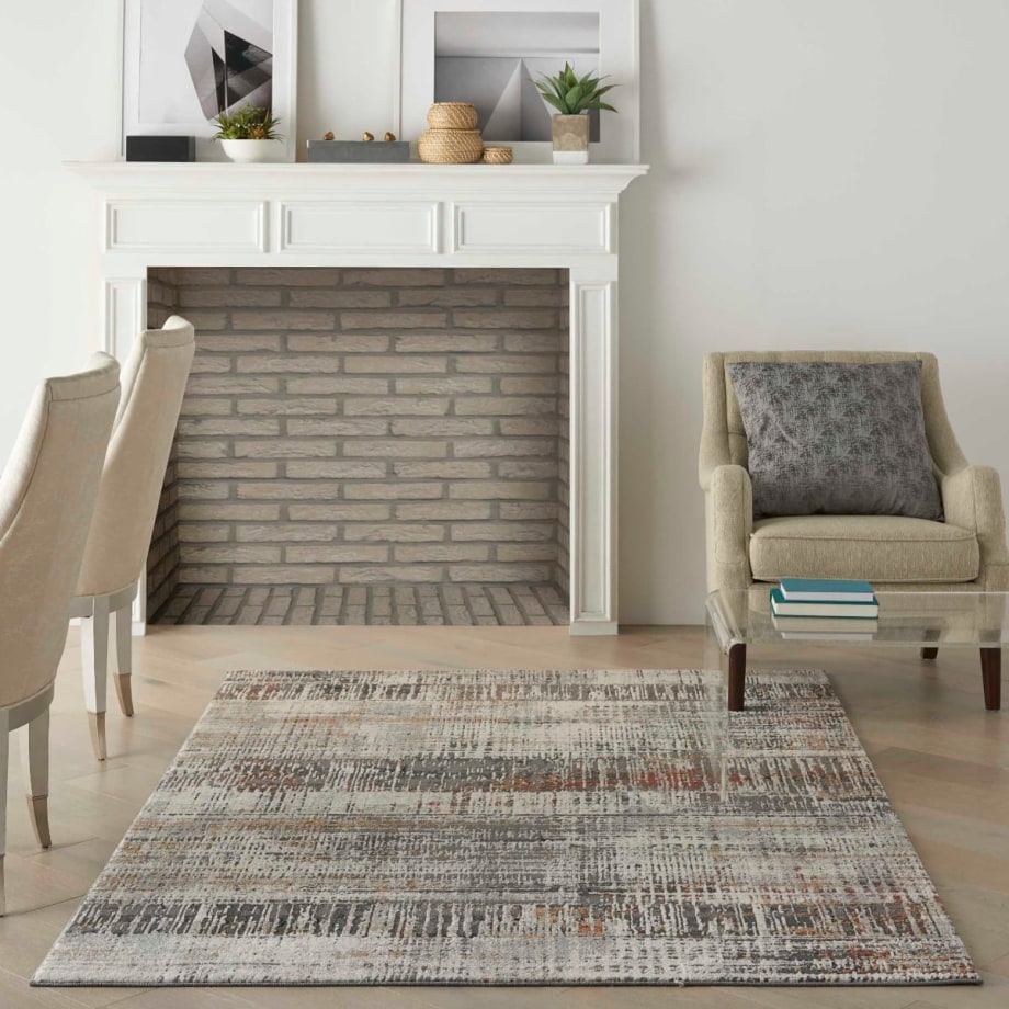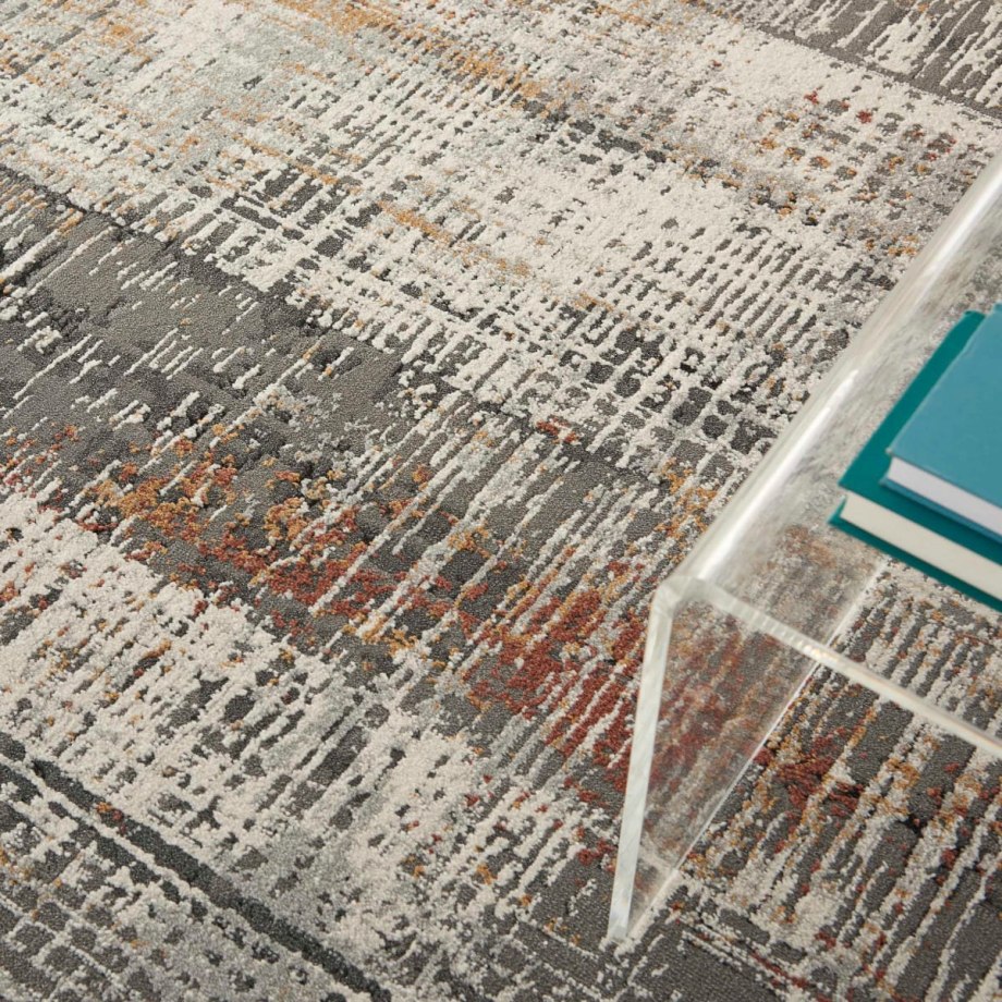 A linear pattern of artfully etched lines creates form and balance in this excitingly modern Tangra area rug. The abstract design and rich grey multi-color palette give it superb versatility for decorating a contemporary or eclectic room. Its low pile and poly-fiber blend fit the modern lifestyle.