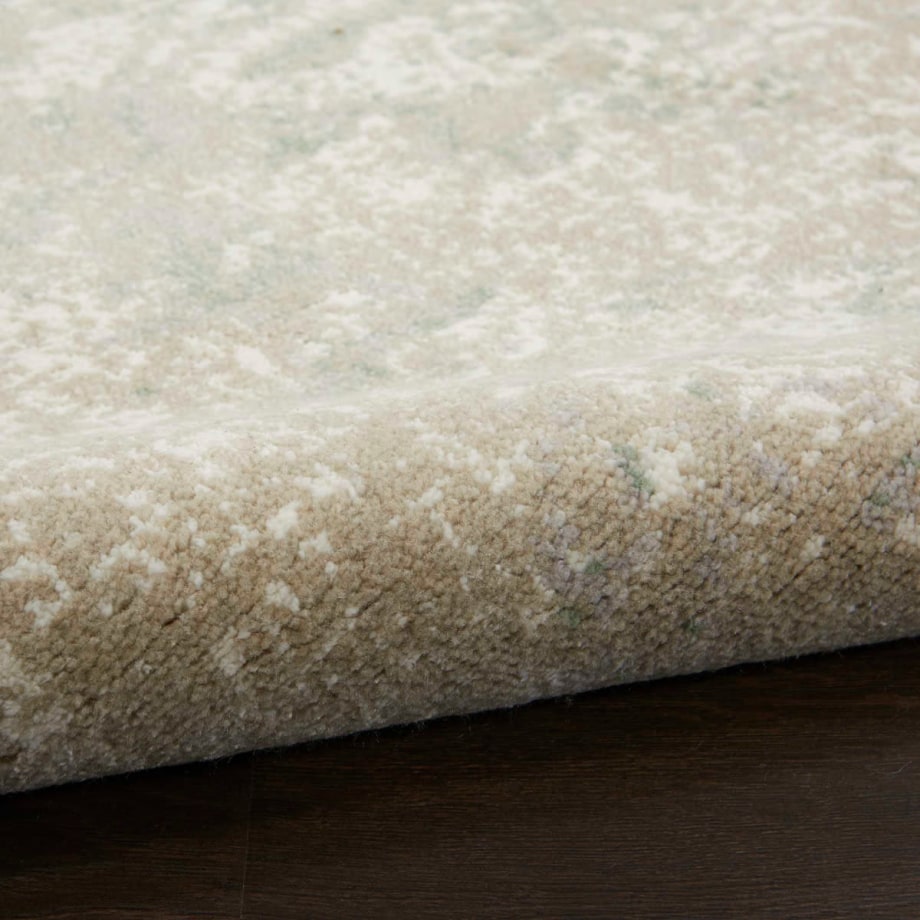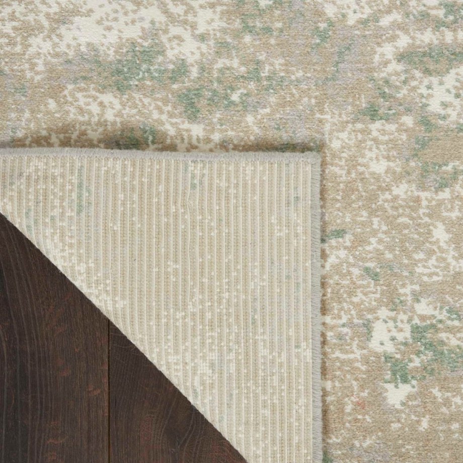 Transform a room into a thrilling space with this modern expression of superb textile arts. The sophisticated abstract design creates pools of shimmering light that reflect an ambiance of soft luminosity. This unusual piece is endlessly fascinating.
