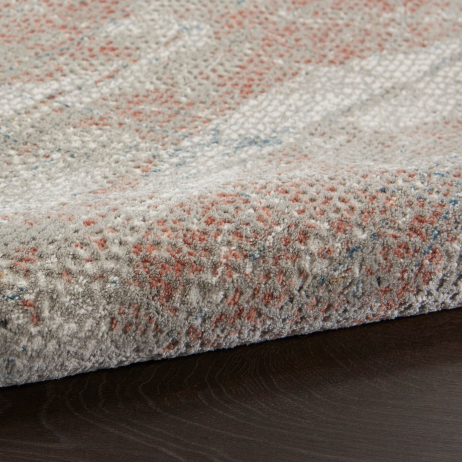 Bring exciting Rustic Textures into your home with this unique area rug inspired by the rich mineral tones and natural veining of granite. Its light grey and warm rust palette is enhanced with cut-pile technique for the ultimate in textural appeal. A modern beauty with serged edge and low-shed, easy-care fibers.