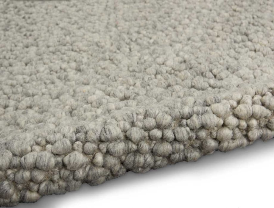 Traditional Berber weaving gets a contemporary upgrade in this large-loop area rug from the CALVIN KLEIN Riverstone Collection. The uniquely thick pebble weave creates a beautiful look and feel, with delicious texture and tonal depth. Hand-woven wool, in soft, smoky grey-and-ivory.