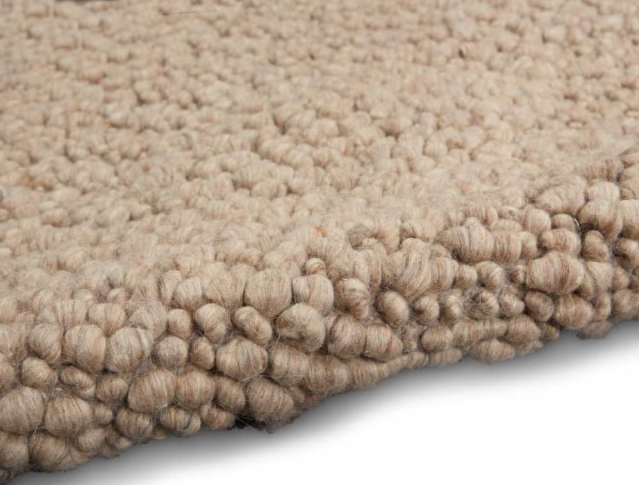 Traditional Berber weaving gets a contemporary upgrade in this large-loop area rug from the CALVIN KLEIN Riverstone Collection. The uniquely thick pebble weave creates a beautiful look and feel, with delicious texture and tonal depth. Hand-woven wool, in warm mocha.