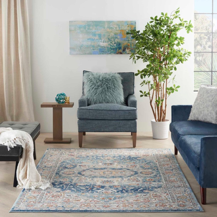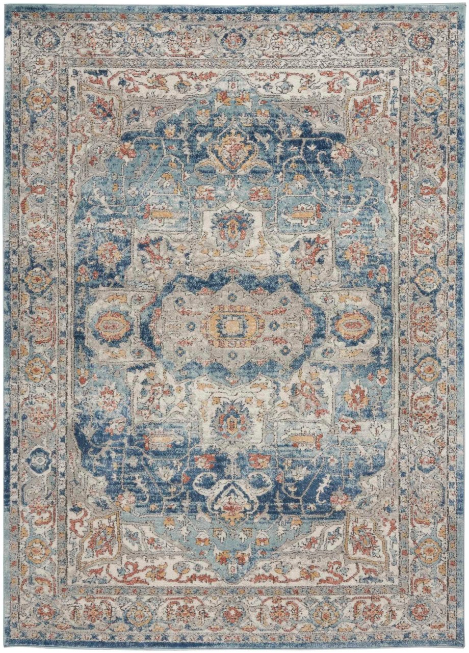 A classic center medallion motif framed in magnificent shades of blue gives this ivory-ground Quarry area rug special appeal. Its intricate Persian garden design with wide ornamental border gains vintage allure from a specially treated surface fade. With high cut-pile, it is an exquisite focal point for your living room, dining room, family room, bedroom or home office.