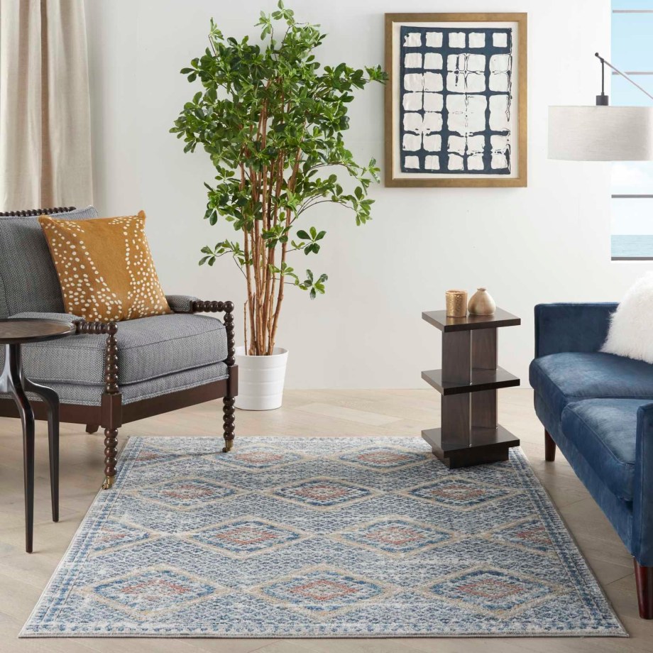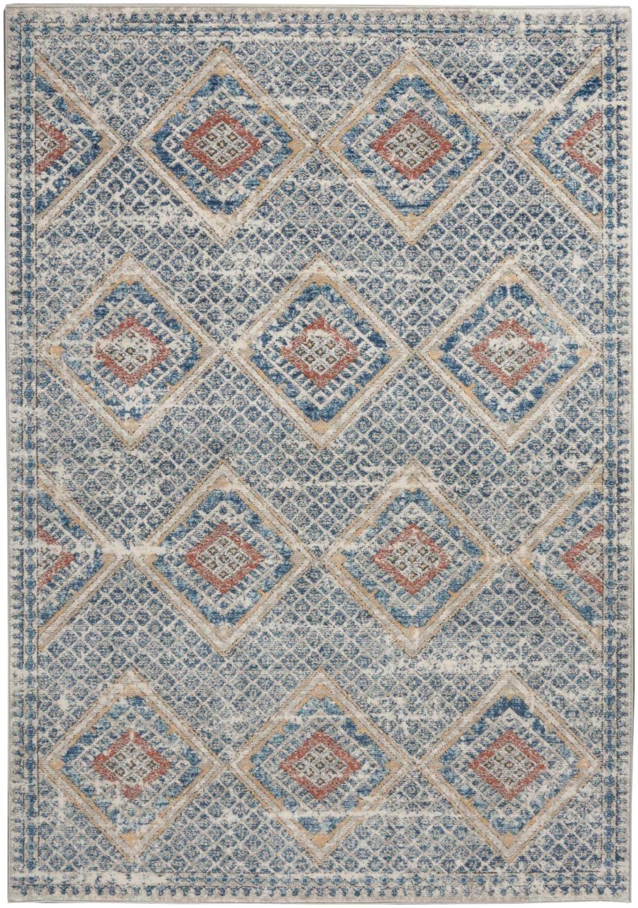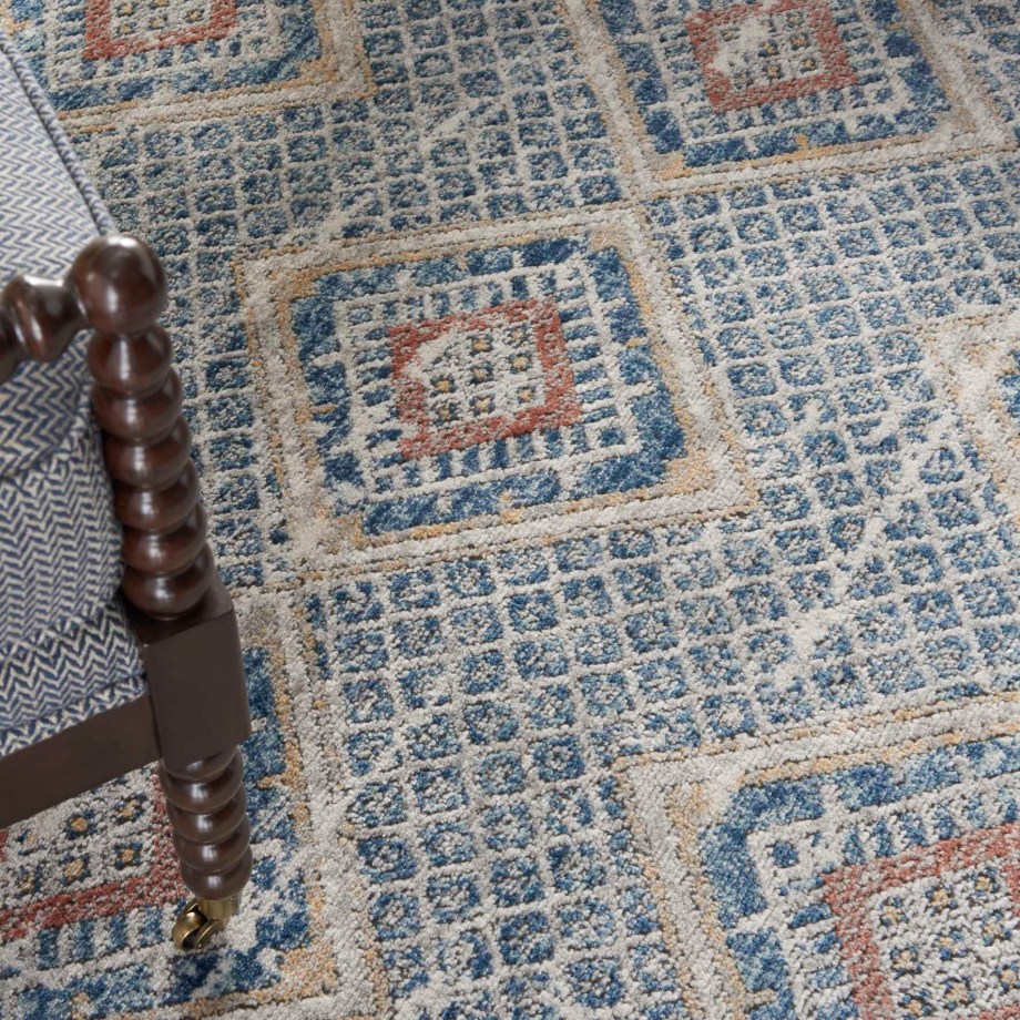 Diamonds upon diamonds give this richly patterned and textured Quarry area rug luxurious appeal. Bold concentric diamonds are surrounded by smaller diamond shapes in rich mineral tones. With its purposeful vintage fade, this power-loomed, high cut-pile is as soft and lustrous as a fine antique rug. Finished with a narrow ornamental border and serged edge for an ideal complement to bohemian and contemporary styles of decor.