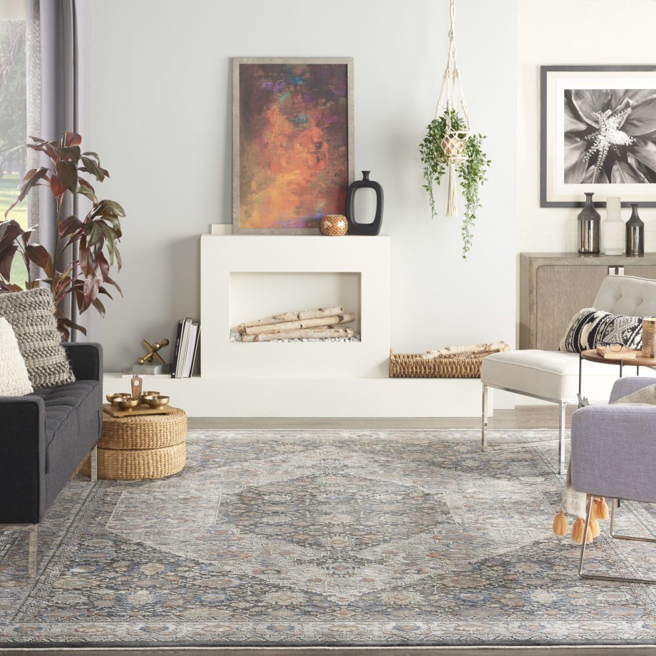 Harkening back to old-world, Persian opulence from centuries ago, the new Starry Nights collection features traditional area rugs with vintage allure. Classic, framed patterns with intricately carved designs showcase elegant color pairings, faded to resemble a priceless family heirloom. A subtle surface shimmer brings the rug to life. Silky to the touch, soft under foot, and an exquisite addition to your home. Keep your home looking its best with a family-friendly Starry Nights rug and Nouri-Guard protection!