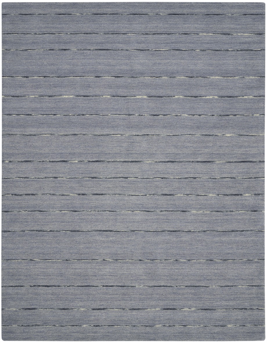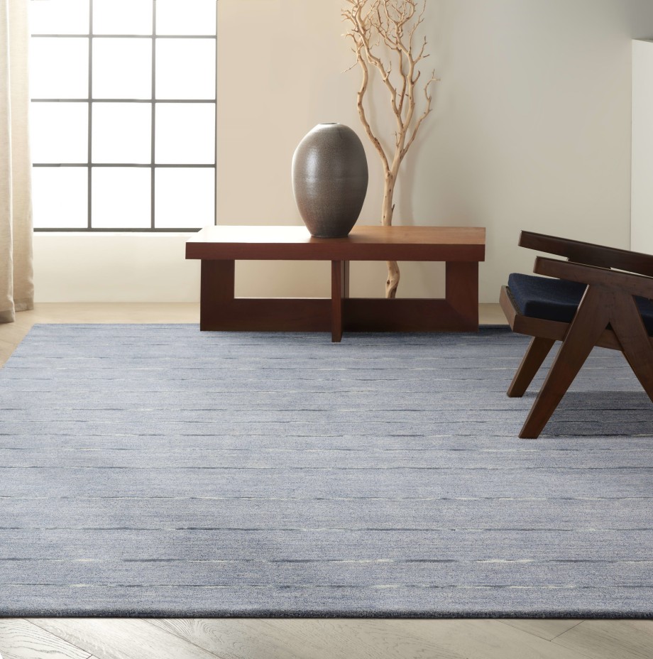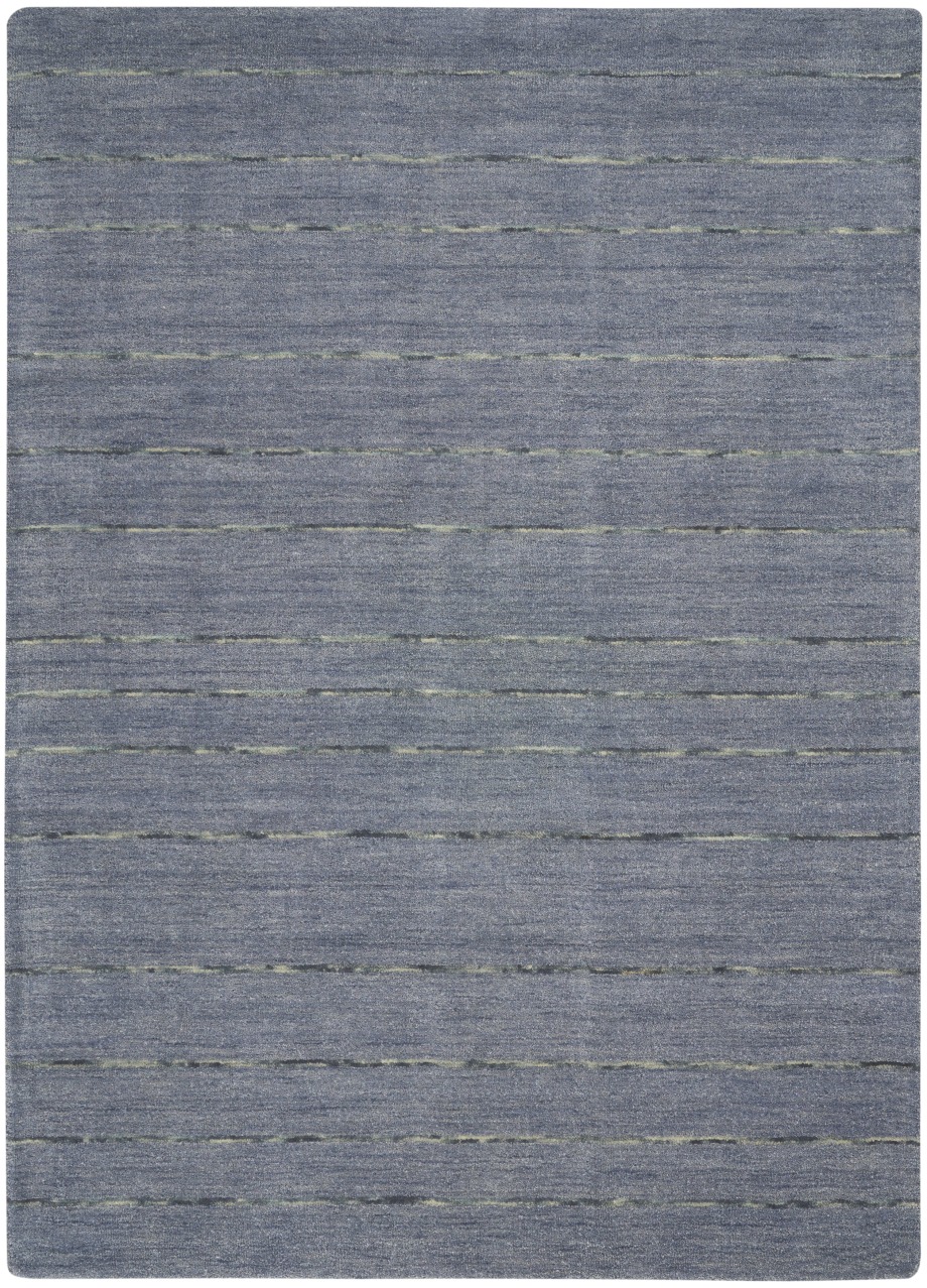 Natural, calming and modern. This Calvin Klein Halo rug offers a clean foundation for modern decor. A charcoal grey ground, space-dyed for tonal variation, is accented by softly broken stripes in neutral grey and ivory. This minimalist rug design is handmade of softly textured, low-profile wool fibers for lasting comfort.