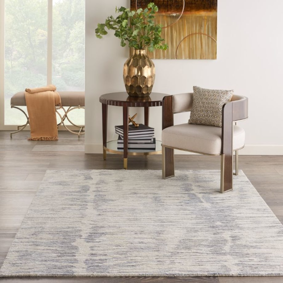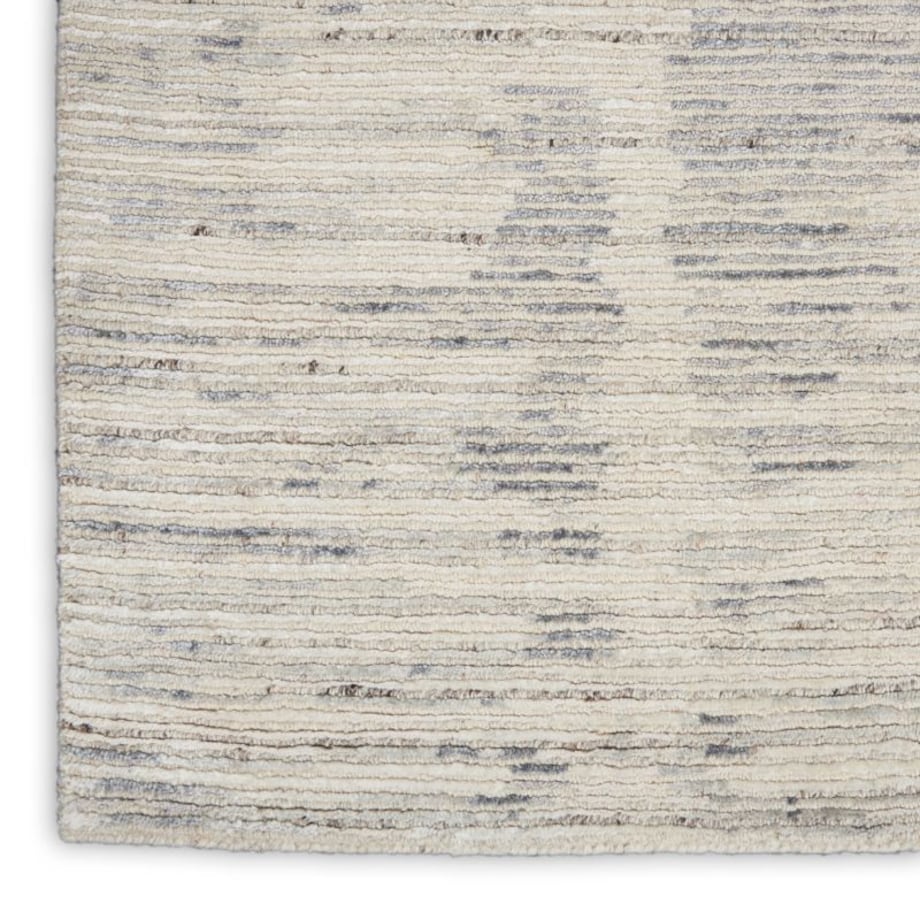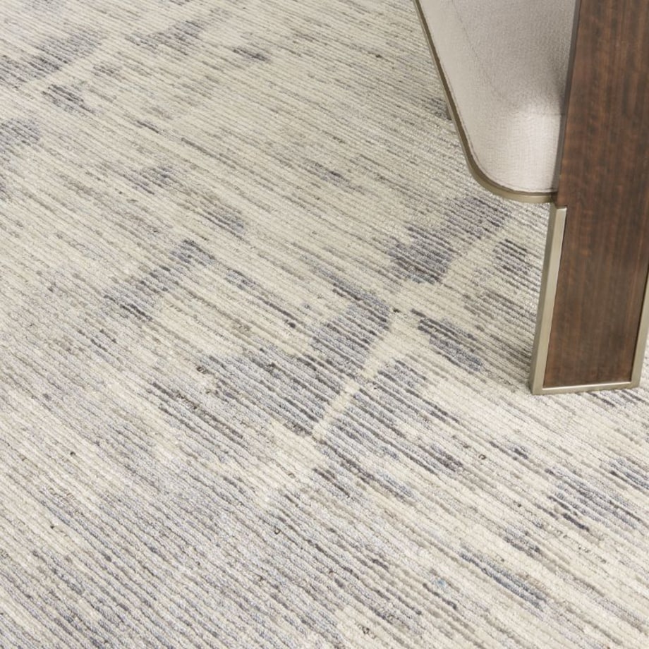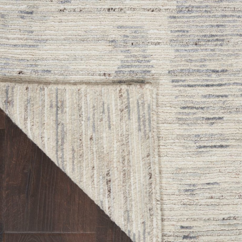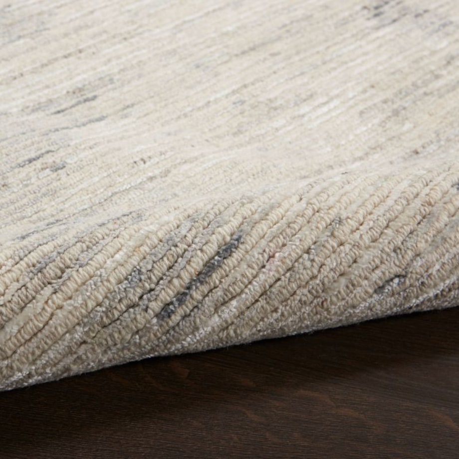| Lush and richly textural hand-knotting ripples across the surface of this mesmerizing Ocean Collection area rug. Its ivory-and-slate colors mingle in endless variation like the ebb and flow of soothing waters. This low-pile, low-shed rug has a modern wool-linen-rayon blend for endless beauty and reliable performance. |