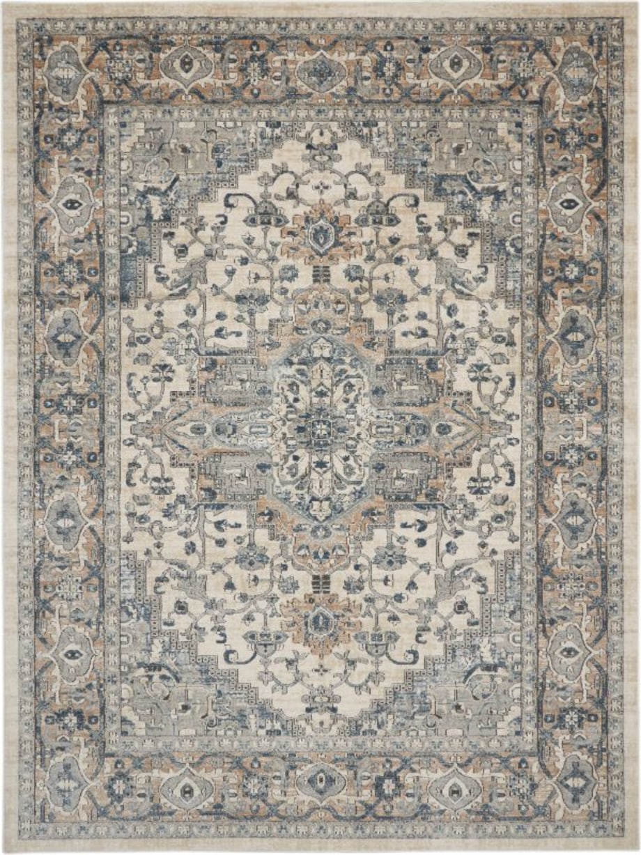 | The beauty of traditional Persian garden rug design takes on fresh appeal with the mineral palette of the Quarry collection. Its slate grey and sand beige details sparkle on an alabaster ground. Center medallion and intricate border complete the look of this endlessly intriguing area rug. |