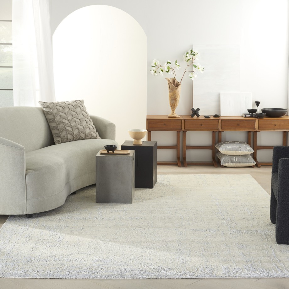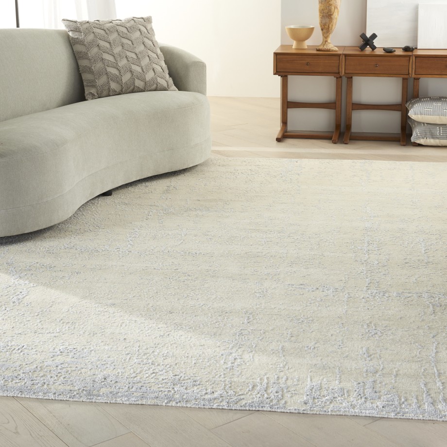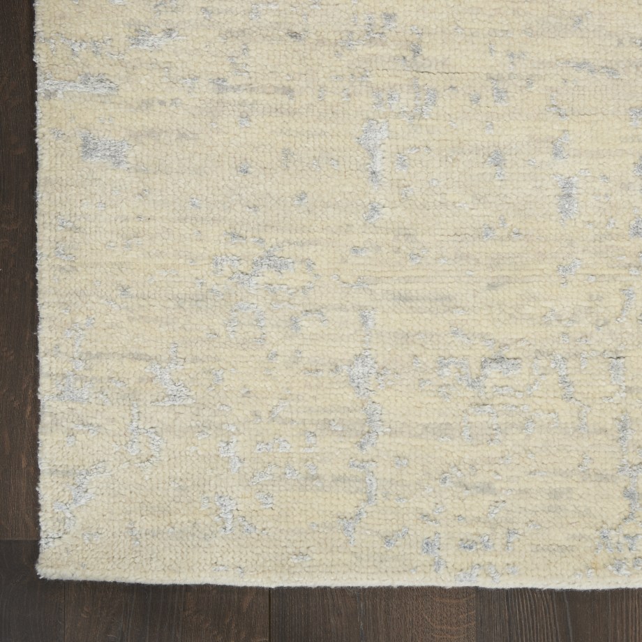 Complete your contemporary or eclectic look with the modern sophistication of this Luna area rug. Hand-knotted in a luminous ivory-silver color combination, the all-over design presents a drybrush watercolor effect. Subtle variations in color and size make each rug as unique as the artisan who crafted it. Enjoy its textured low pile with easy-care qualities in any favorite room.