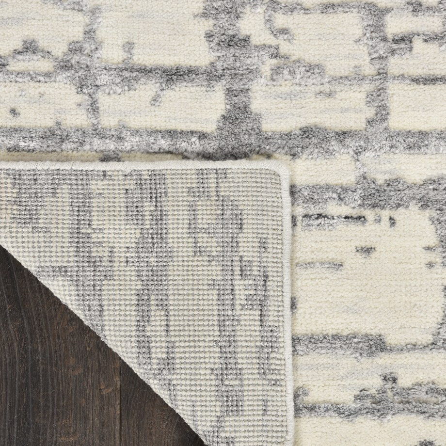 This hand-knotted Luna area rug brings you contemporary design with a flourish! Exciting linear pattern has a modern mosaic effect that will finish your decor with movement, texture and balance. Beautifully handmade in a soft ivory-grey palette, with subtle variations that make each rug unique.
