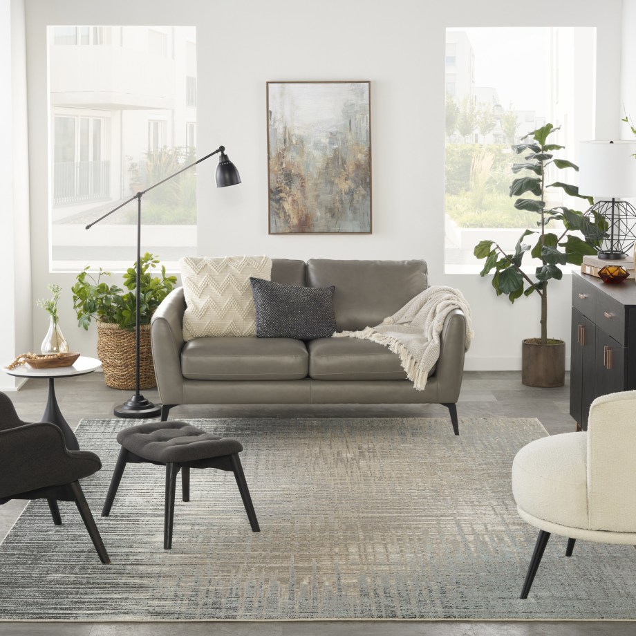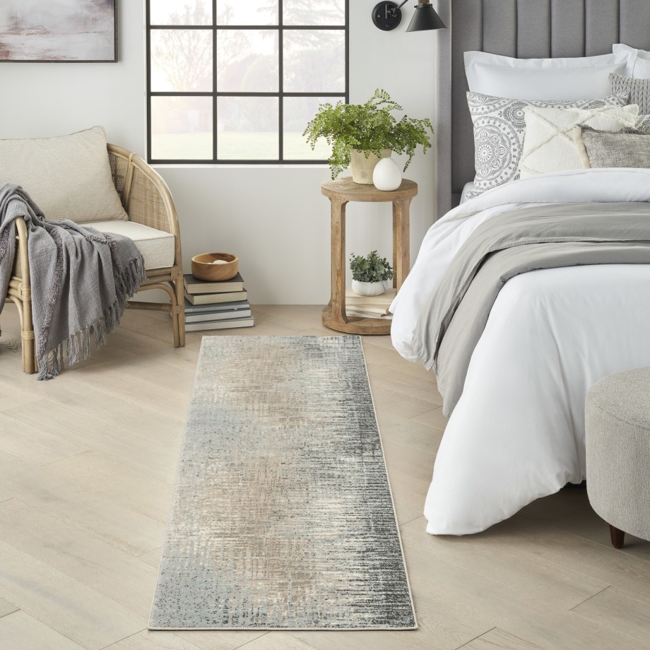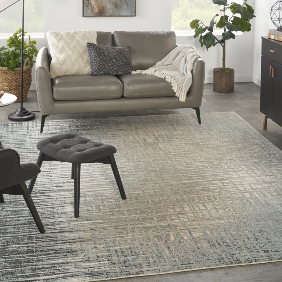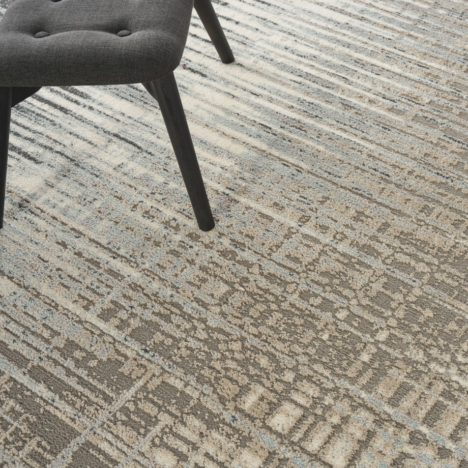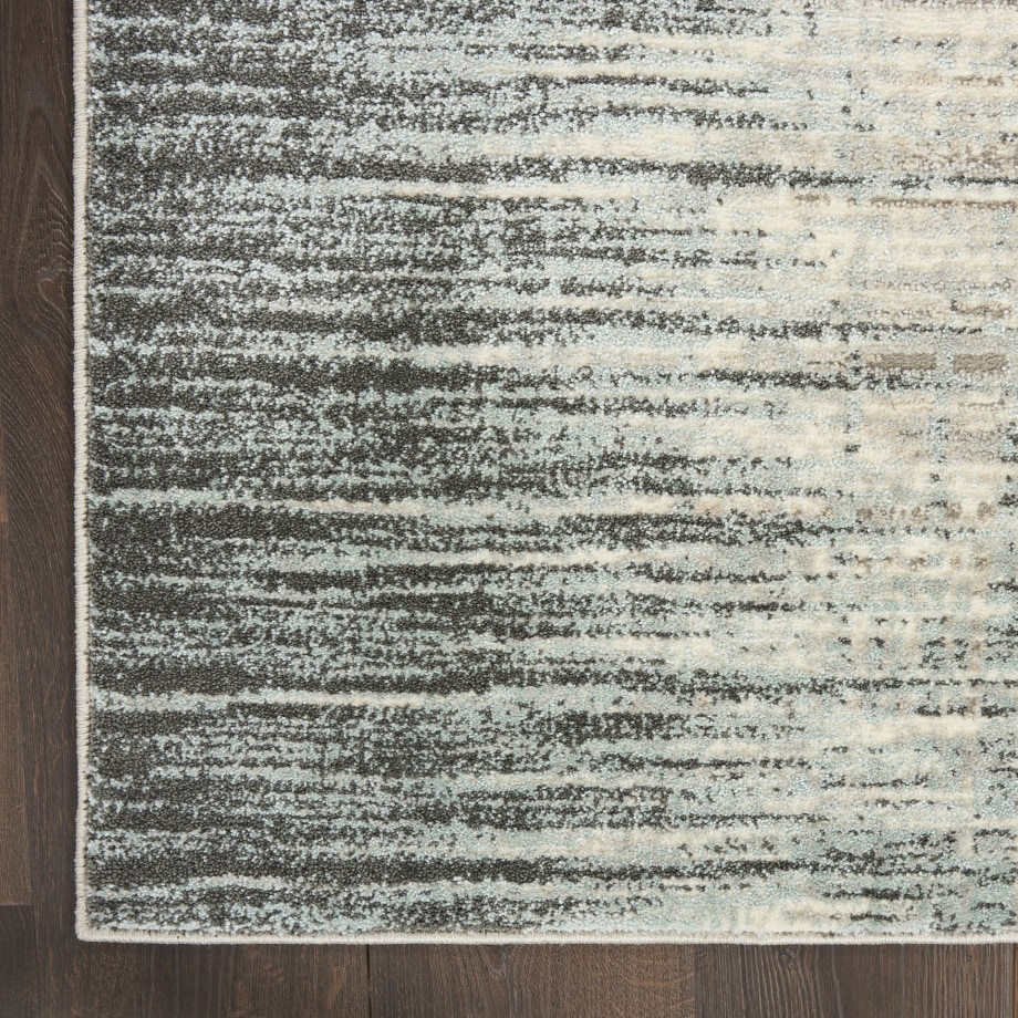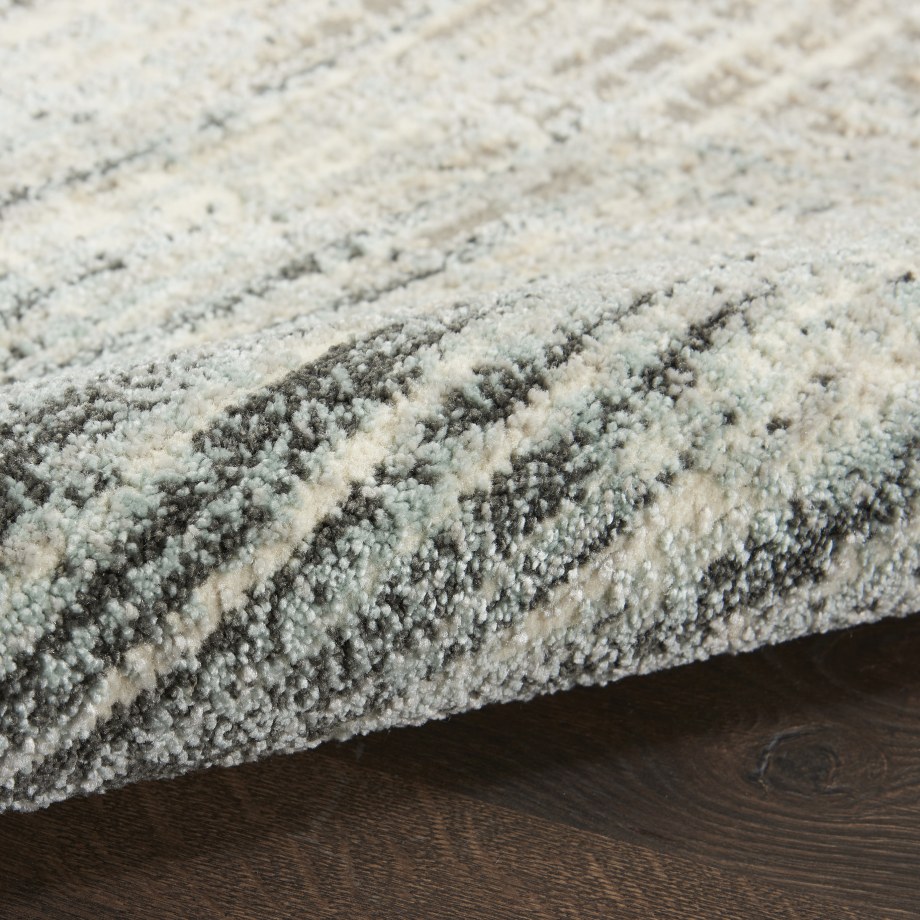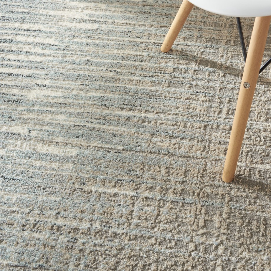 Abstract meets contemporary with this innovative rug from the Marmara Collection. An eclectic blend of blue, grey, and ivory tones come together to make a bold statement in your living room, dining room, or bedroom. Machine-made from low-shed polyester for easy maintenance.
