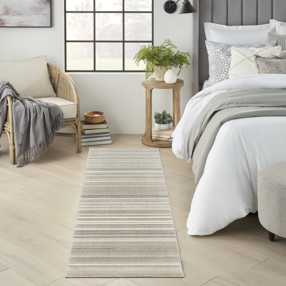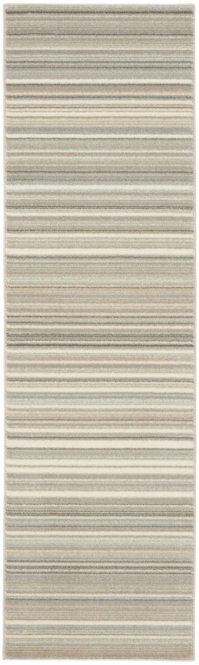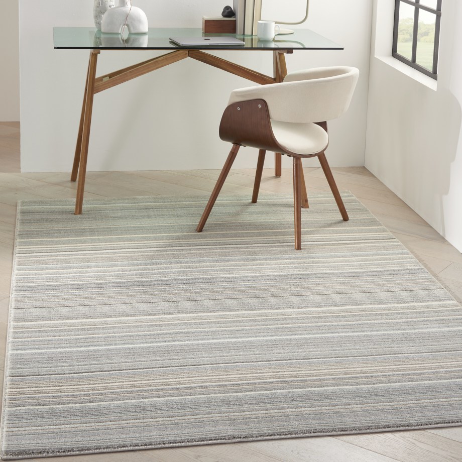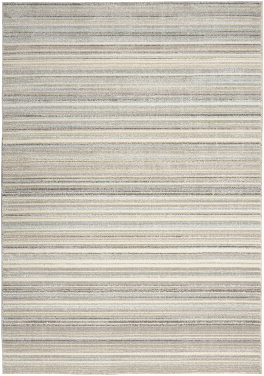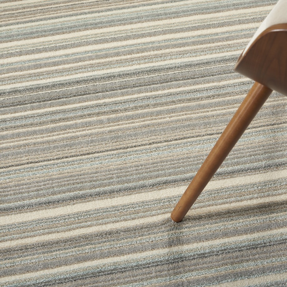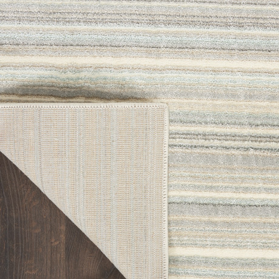 The striped pattern of this contemporary rug from the Marmara Collection brings a relaxed coastal feel to your living room, dining room, or bedroom. Presented in shades of grey, teal blue, and ivory, it effortlessly balances modern sophistication with casual comfort. Skillfully made from durable low shed polyester for easy upkeep.