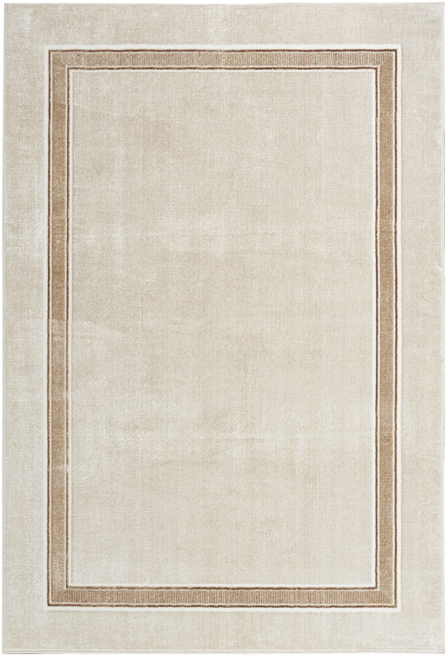 This classic bordered rug from the Glitz Collection adds a chic look to your living room or bedroom. The simple design is enhanced with a ribbed pattern and matching border in silver and golden brown and is finished with a glamorous sheen that shifts tones under different lighting. Made from softly textured, easy to clean polyester.