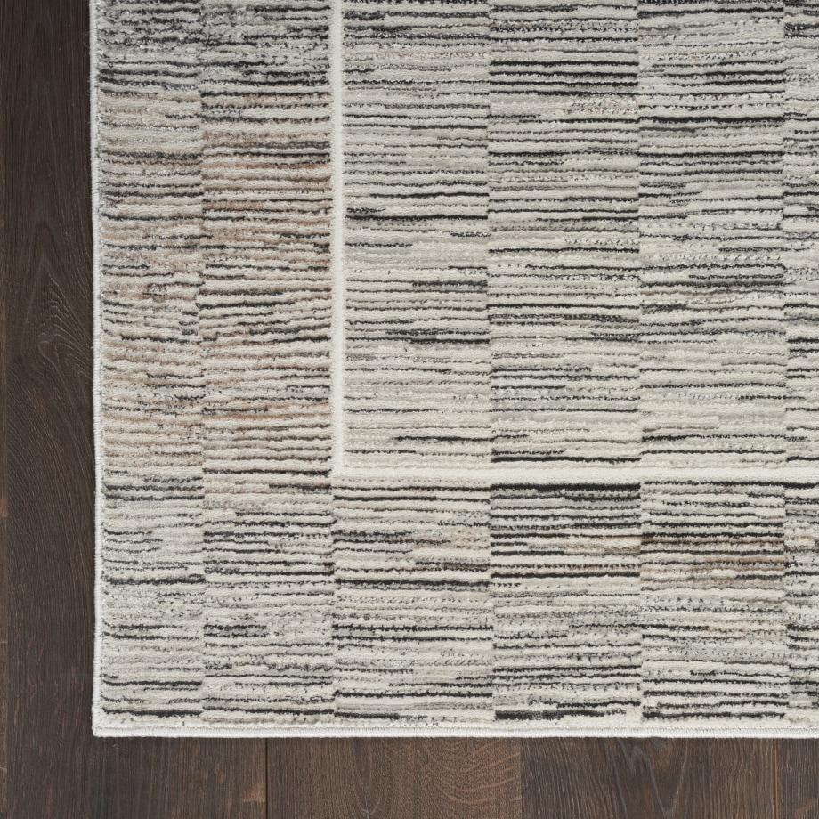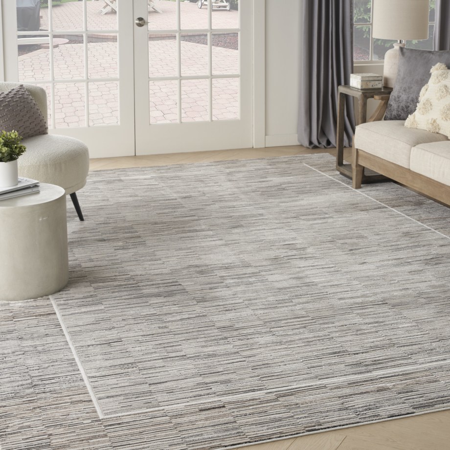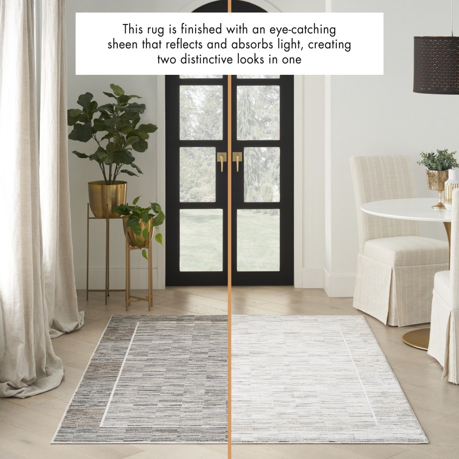 The Desire Collection of geometric and abstract rugs tastefully blend classic design elements with a modern sensibility. Pattern and texture variations, presented in neutral color palettes, are enhanced with a brilliant sheen that changes color from black to silver with changes in light. These modern rug designs are made from easy-clean, non-shedding polyester yarns that feel amazingly soft underfoot, with a low pile height that fits easily under furniture.