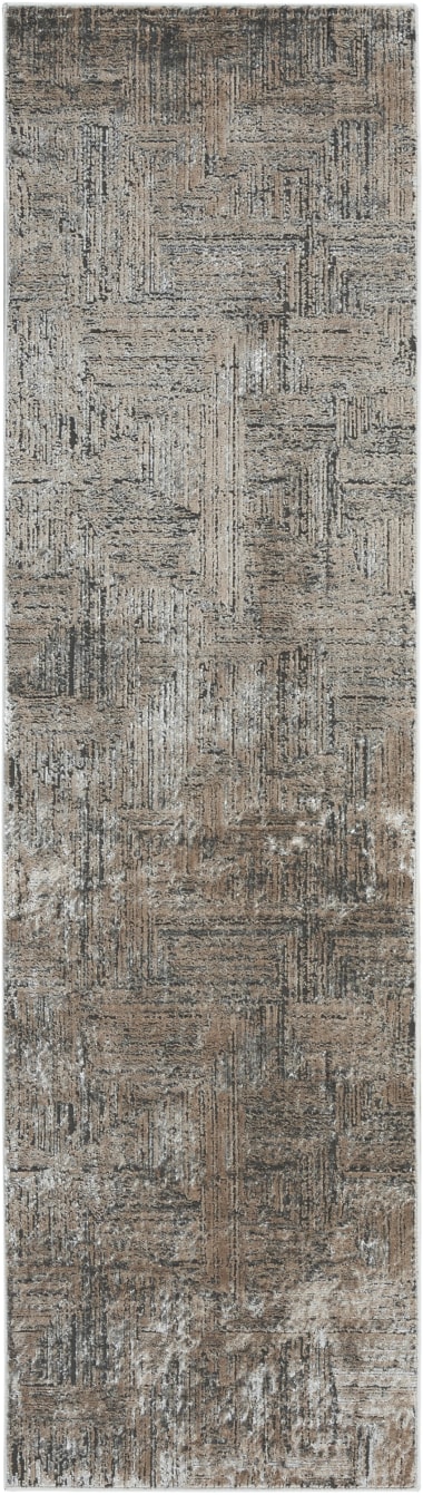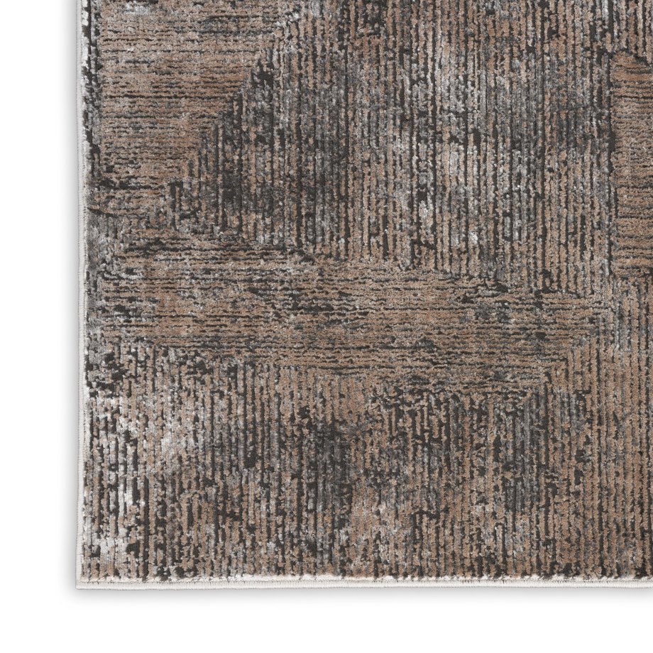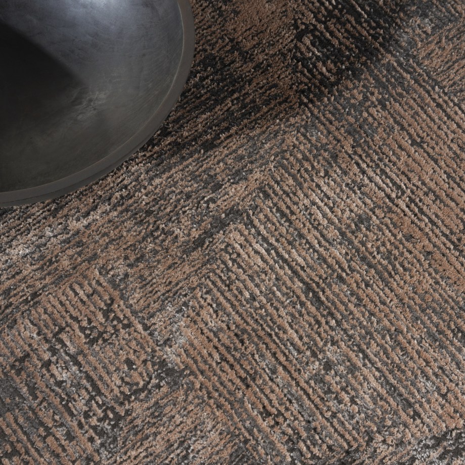 This abstract rug from the Calvin Klein Irradiant Collection brings minimalist energy to your home. An overlapping linear pattern, presented in silver grey tones, is enhanced by subtle texture variations and a vivid sheen. Machine-made from polyester for modern living.