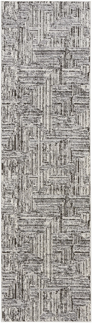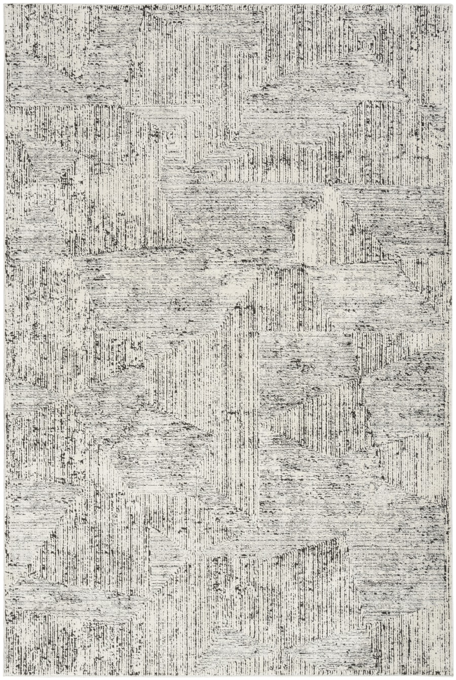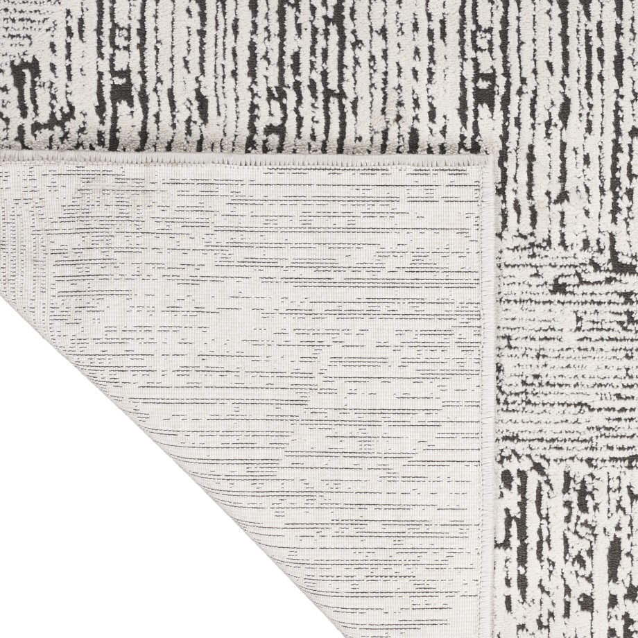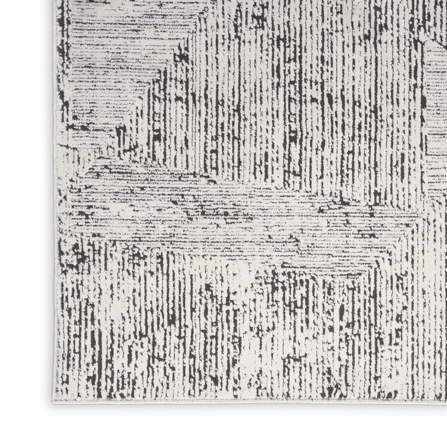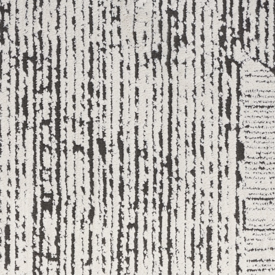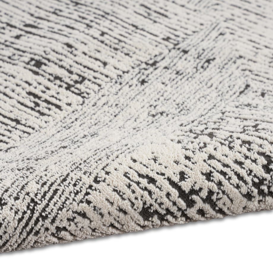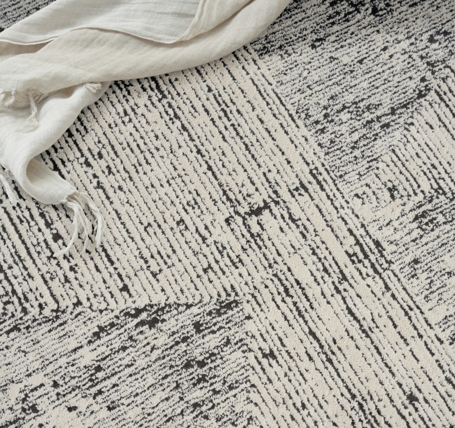 This abstract rug from the Calvin Klein Irradiant Collection brings minimalist energy to your home. An overlapping linear pattern, presented in cream and black tones, is enhanced by subtle texture variations and a vivid sheen. Machine-made from polyester for modern living.