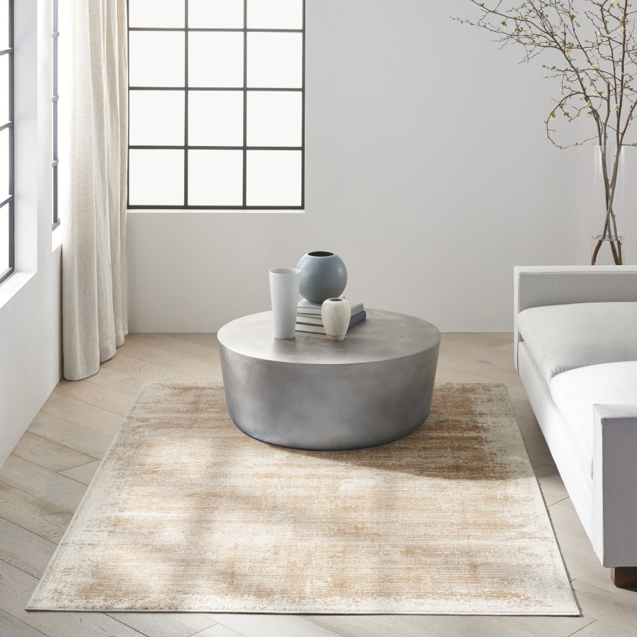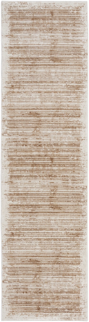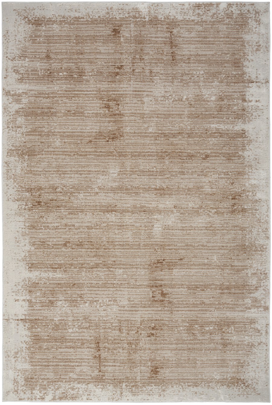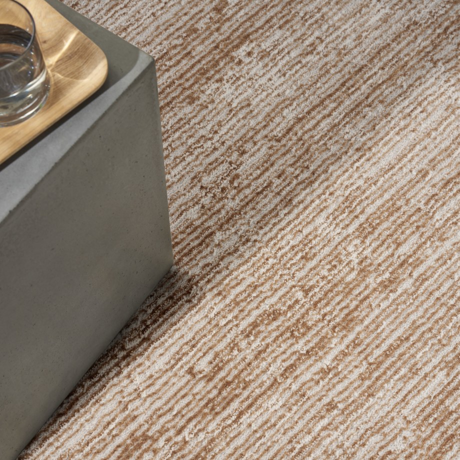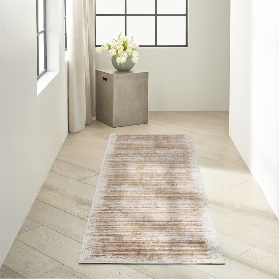 This abstract rug from the Calvin Klein Irradiant Collection makes a standout statement. The linear design is presented in rose-gold and silver and is enhanced with a rich sheen that shifts with changing light. Machine-made from softly textured polyester fibers.