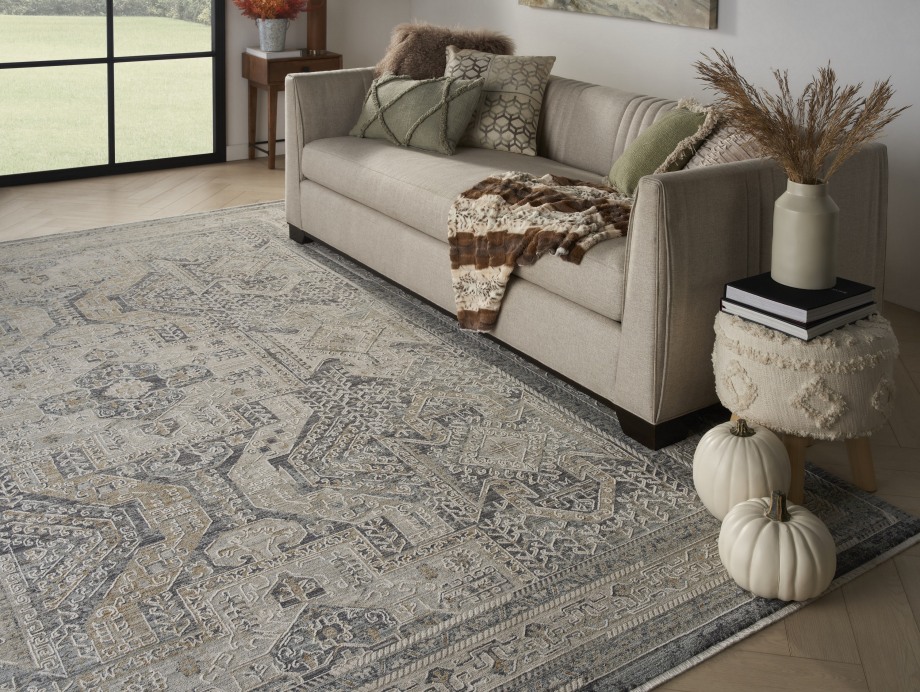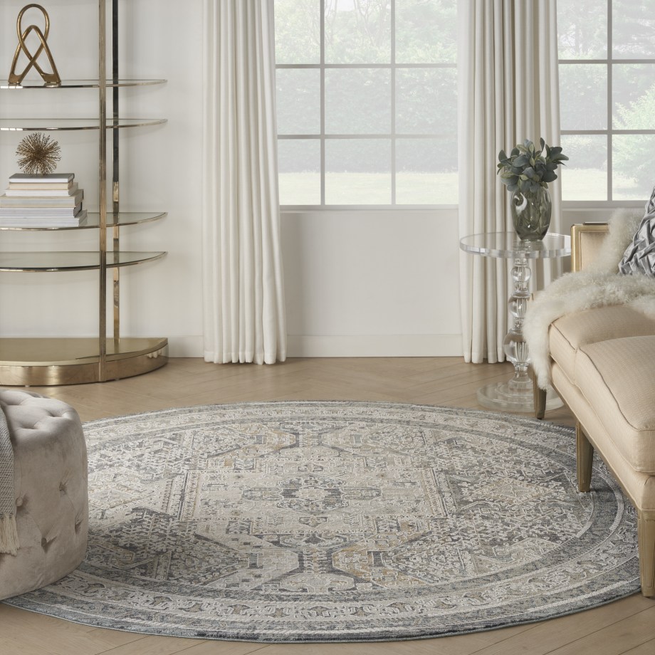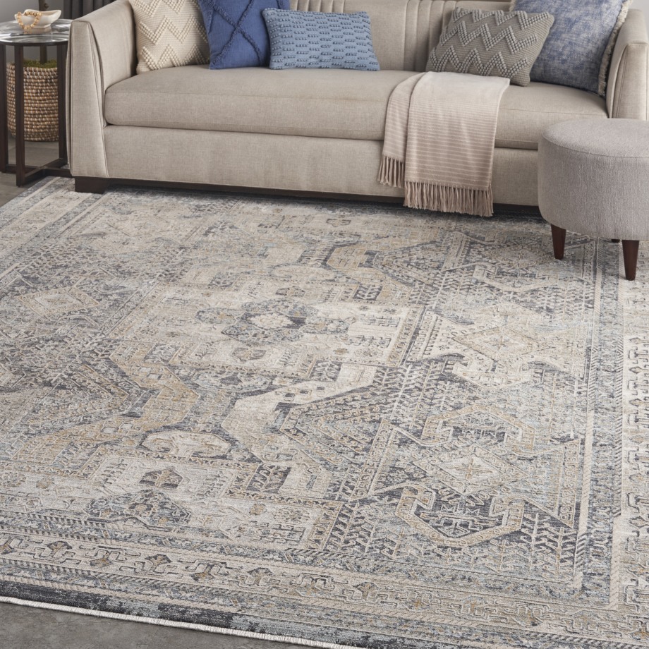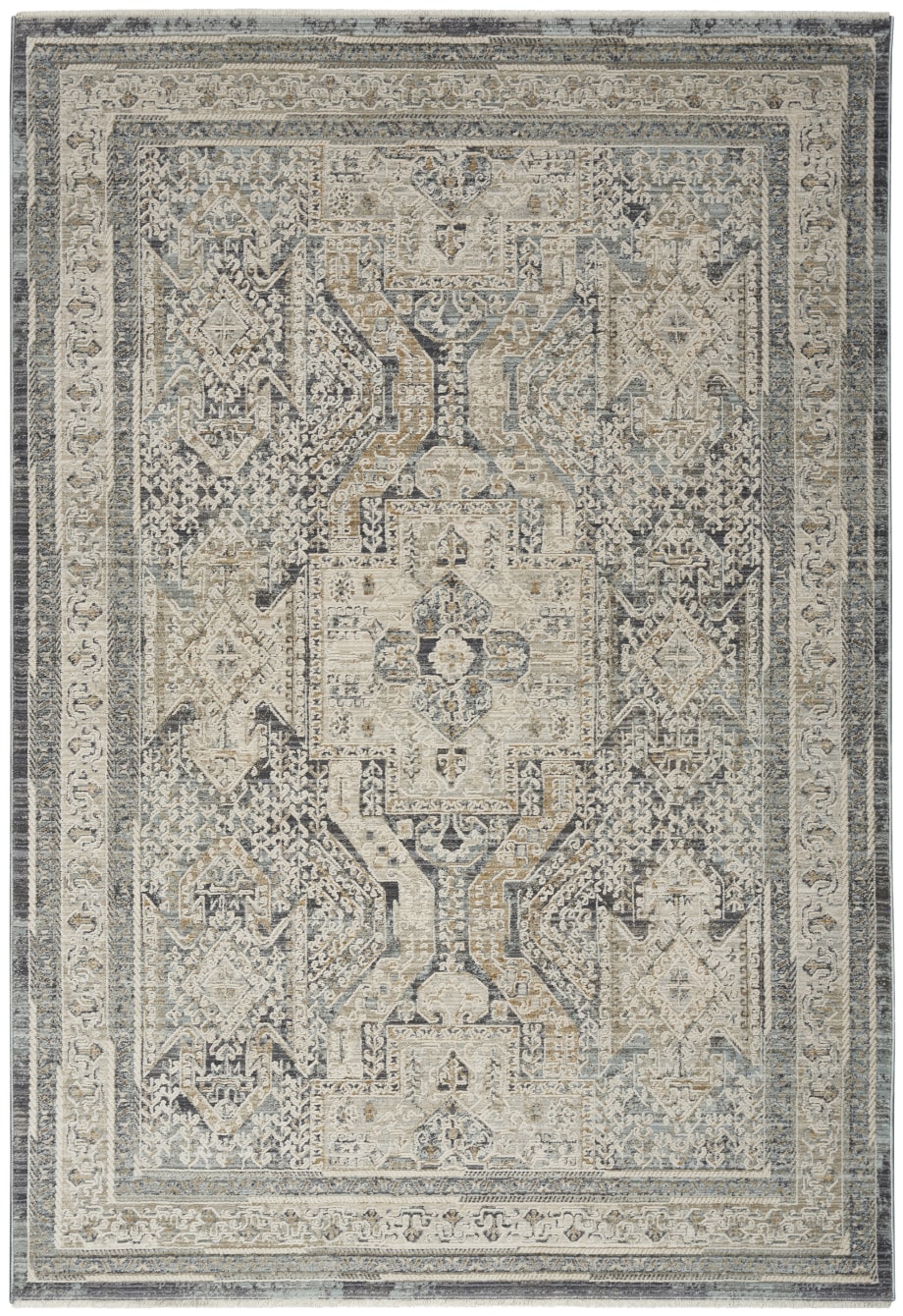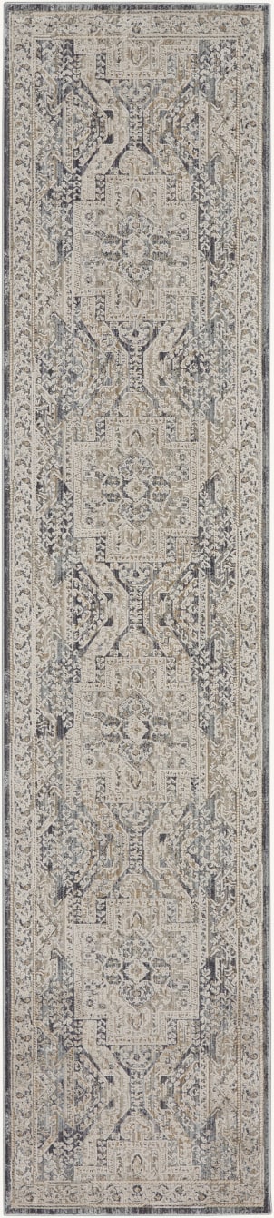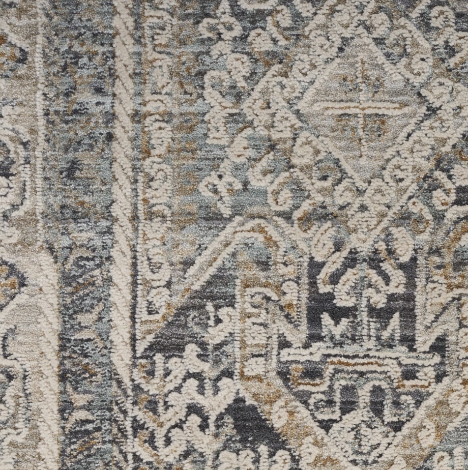 Complement your eclectic style with this boho rug from the Lynx Collection. A classic Persian center medallion pattern is surrounded by intricate botanical motifs, framed by a matching border. The vintage design is enhanced by subtly raised accents that add a unique layer of depth. This ivory and charcoal grey rug is finished at each end with short fringe and metallic serged sides. Runners do not include the fringe.