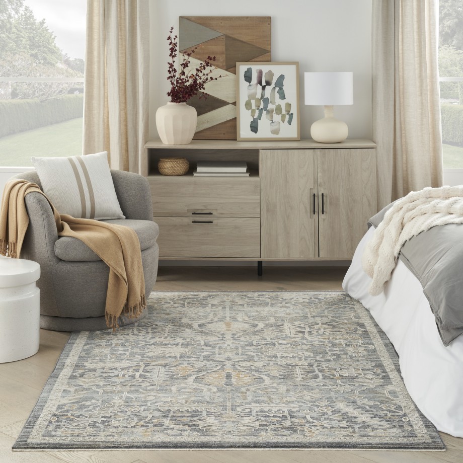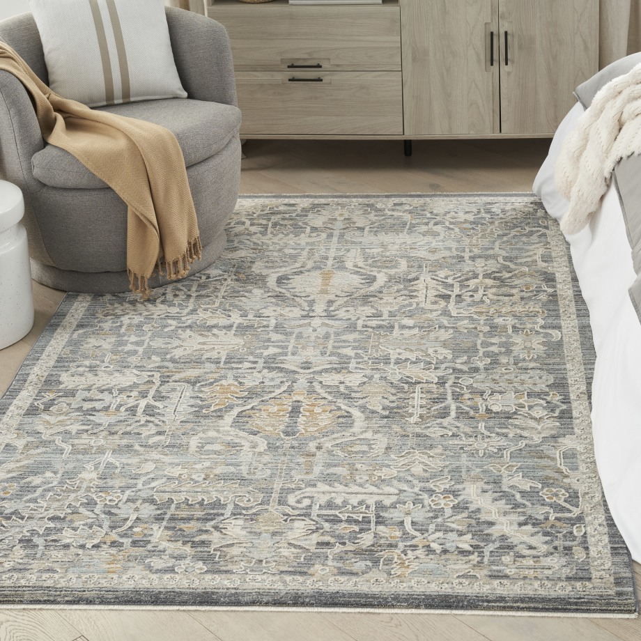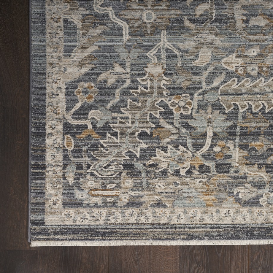 With its global-inspired botanical design and abrash navy multicolor effect, this boho rug from the Lynx Collection adds a vintage vibe to your space. The traditional design is framed by a thin floral border, with fringe at both ends, metallic serged edges, and high-low accents that add a subtle layer of dimension. Machine-made from softly textured fibers that are easy to clean. Runners do not include the fringe.