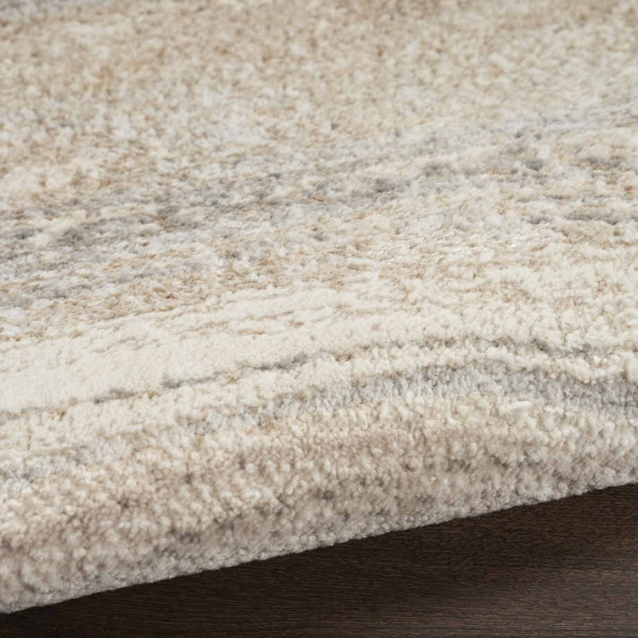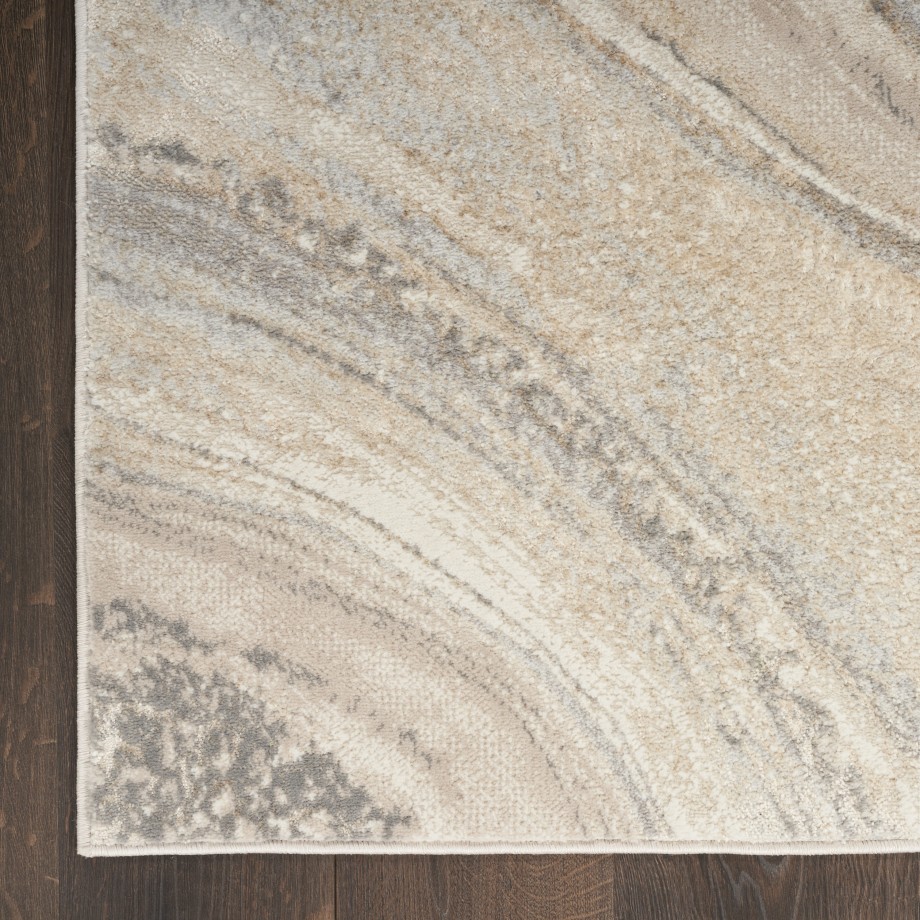 Ground your space in elegance with this abstract rug from the Inspire Me! Home Décor Brushstrokes Collection. The marble-like design swirls with shades of gold, grey, and silver, with metallic accents that shimmer vibrantly with changes in ambient light. This contemporary rug has a wonderfully soft high-low texture that adds a layer of warmth to your living room, bedroom, or hallway.