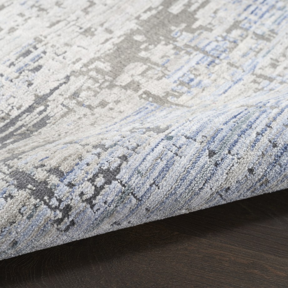 Set the tone for a calm and collected space with this modern rug from the Abstract Hues Collection. Presented in shades of blue and grey, this abstract rug brings relaxing energy to your living room, bedroom, hallway, kitchen, or dining room. Made from softly textured polyester with an attention grabbing sheen and fringe edges. Runner rugs do not include the fringe.