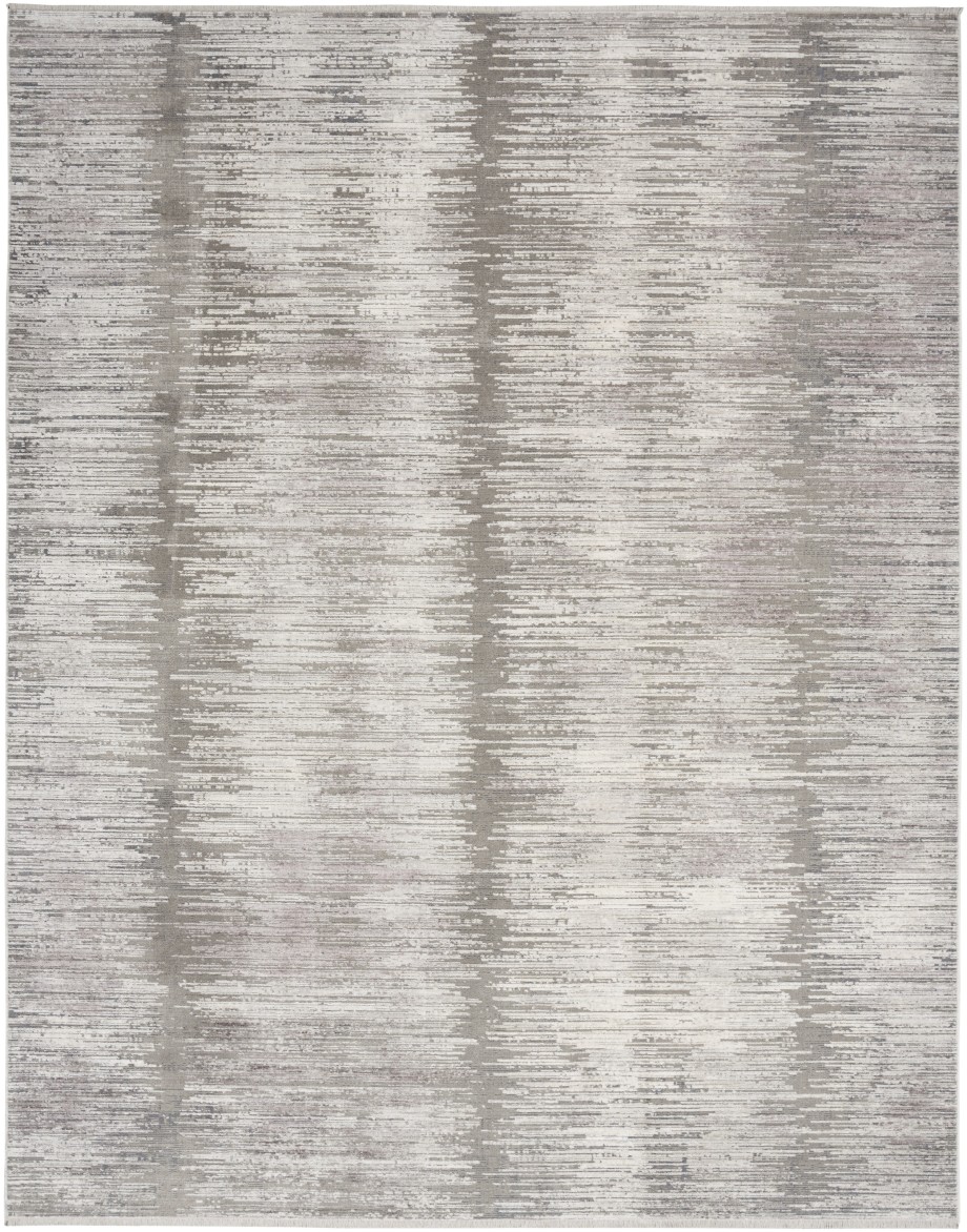 Complement your décor with the pleasing colors and soft texture of this modern grey rug from the Abstract Hues Collection. The abstract design has a short fringe at both ends and is enhanced with a high-low pile that adds subtle dimension. Made from polyester yarns with a silky sheen that beautifully captures and reflects shifting light. Runner rugs do not include the fringe.